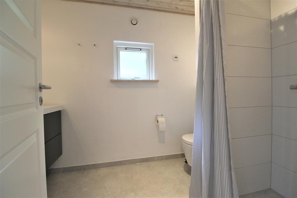 Huset har desuden to badeværelser med bruseniche med wc, hvoraf det ene har vaskemaskine.