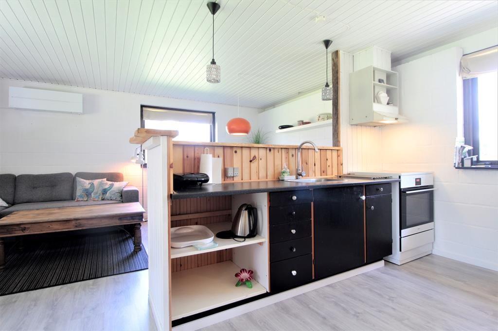 Fritidshus med 2 soveværelser (et værelse med dobbeltseng, et værelse med 2 enkeltmandssenge) 1 ældre originalt badeværelse med wc og bruser, ældre køkken i åben forbindelse med stuen. Derudover er der anneks i haven, med 2 sovepladser.