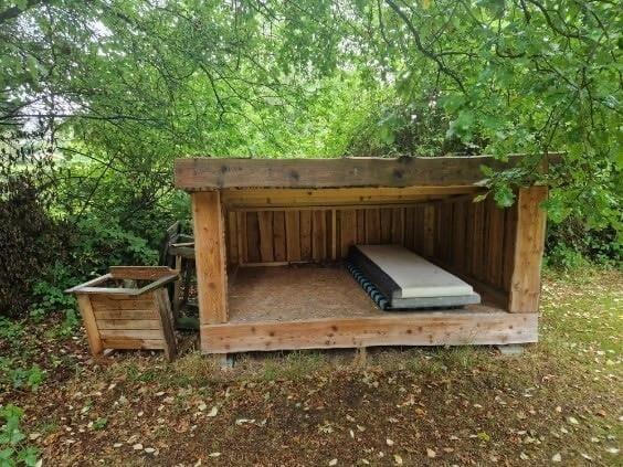 Fritidshuset er beliggende på en 1000 m2 grund. Fritidshuset har en overdækket terrasse, med havemøbler og gril. På grunden er der bål sted og shelter.