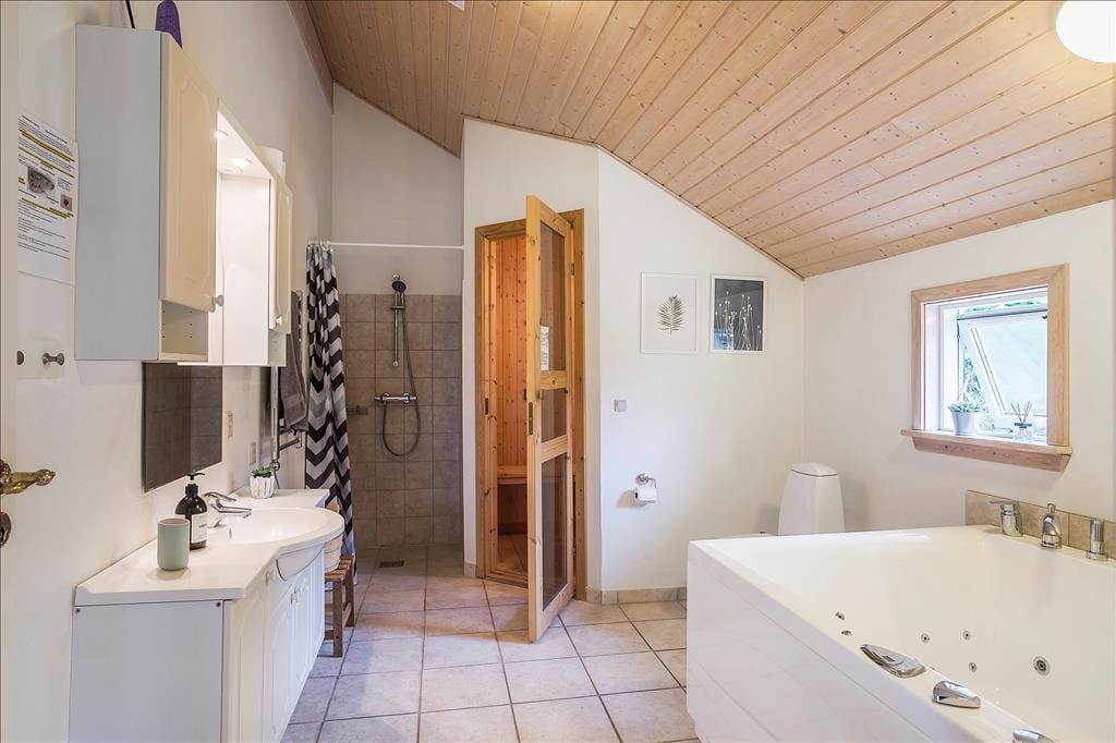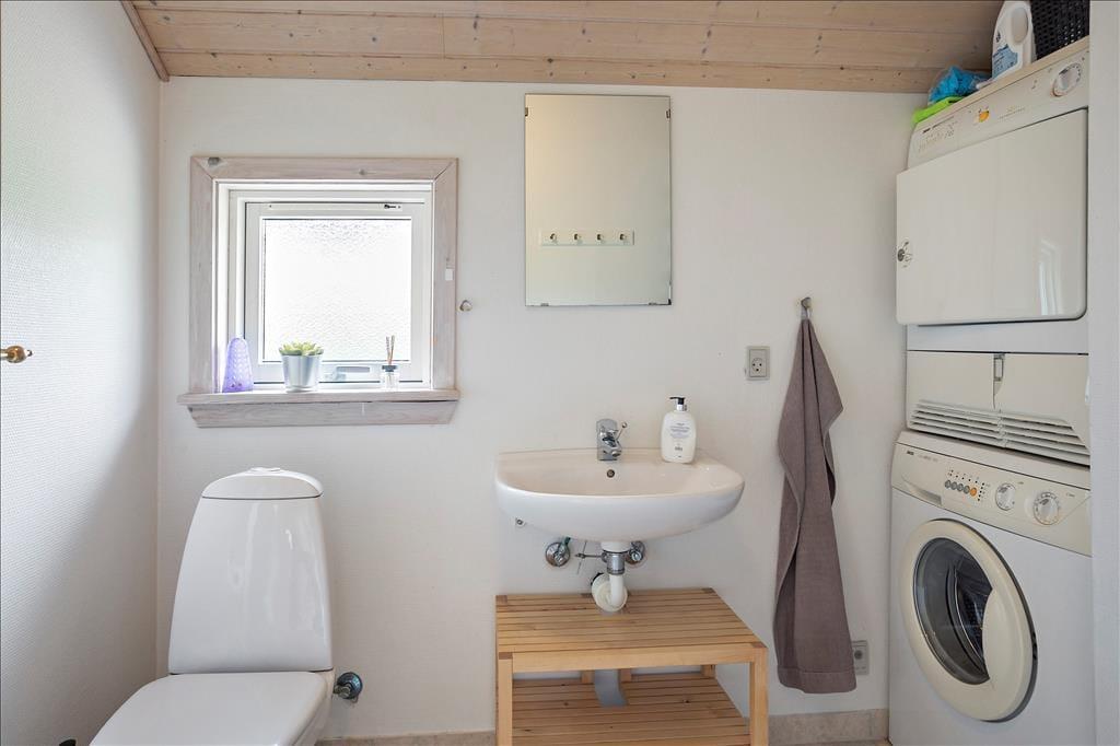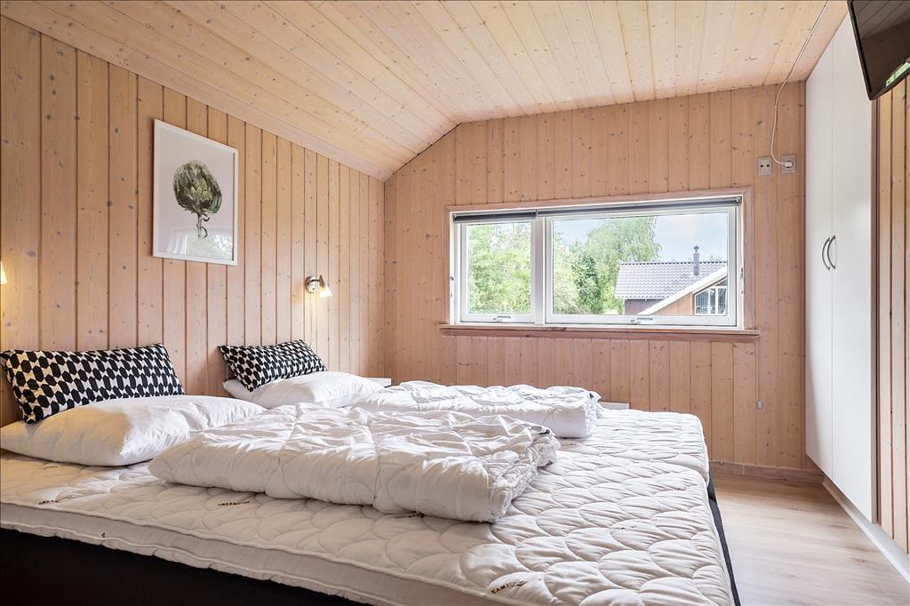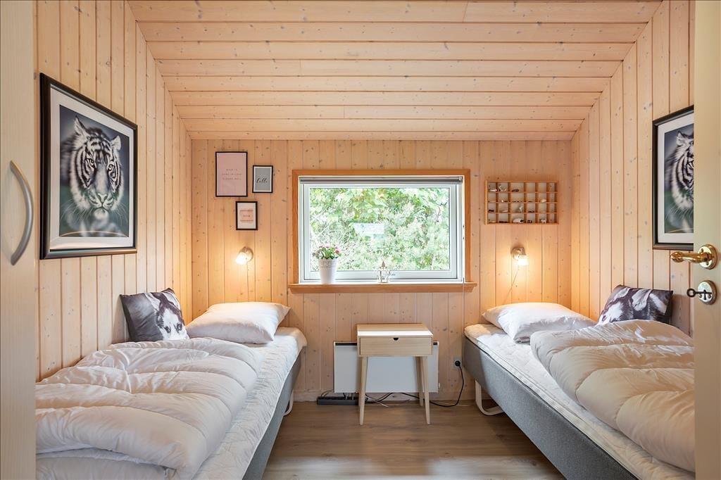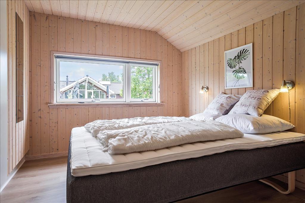 Fritidshuset indeholder: 4 gode soveværelser og 1 hems med 4 madrasser, et stort badeværelse med spa, sauna, wc og bruser, samt et badeværelse med WC, bruser, vaskemaskine og tørretumbler, køkken-alrum med spiseområde sofaafdeling, derudover indeholder fritidshuset også et stort aktivitetsrum med bordtennis, billard-bord og dart. Samt udgang fra stuen til en skøn terrasse.