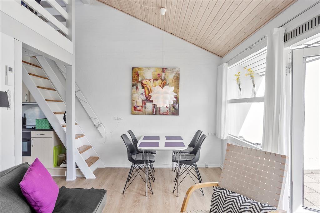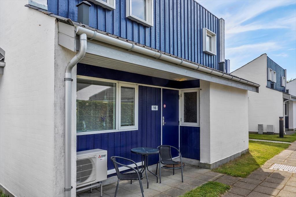 Til lejligheden hører 2 små terrasser, en lille hyggelig privat terrasse på bagsiden af lejligheden, og en lille terrasse foran lejligheden. Havemøbler på begge terrasser.