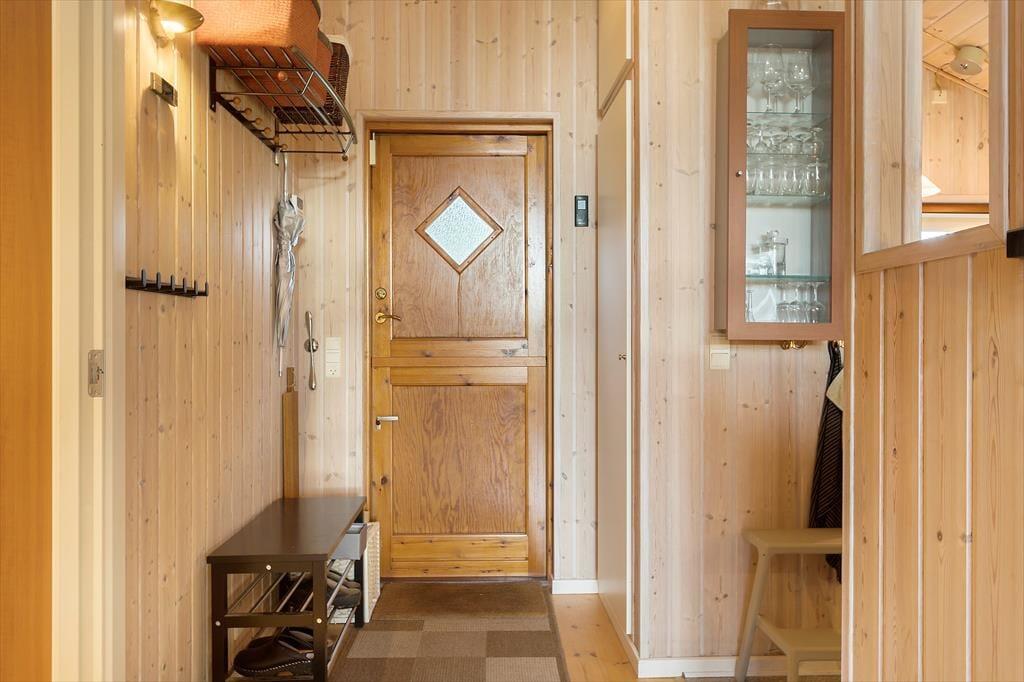 Sommerhuset indeholder: Entré, 2 gode soveværelser, pænt badeværelse med WC og bruseniche samt vaskesøjle, køkken i åben forbindelse til den lyse stue med god brændeovn, fra stuen er der direkte udgang til terrassen og den dejlige have.