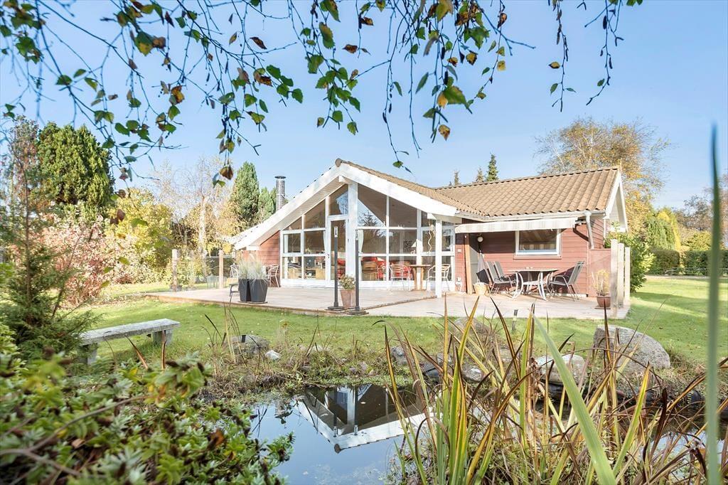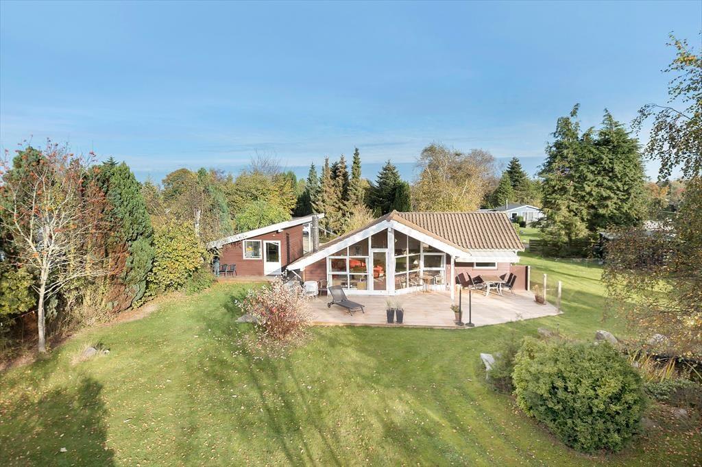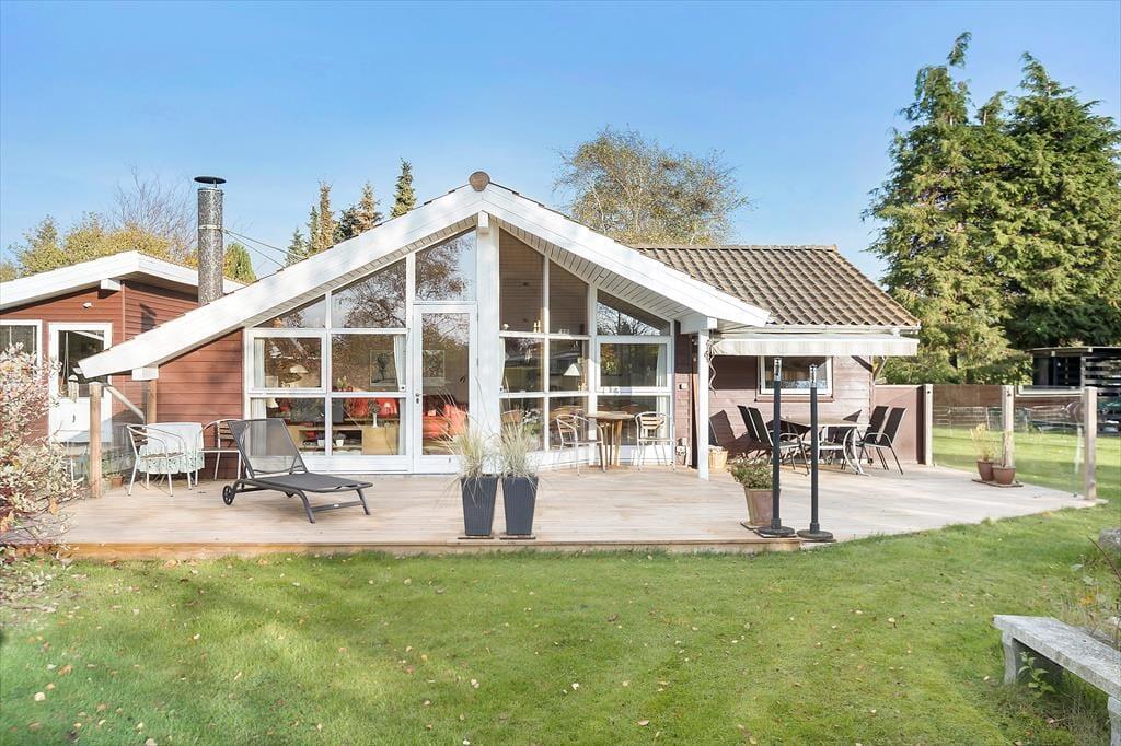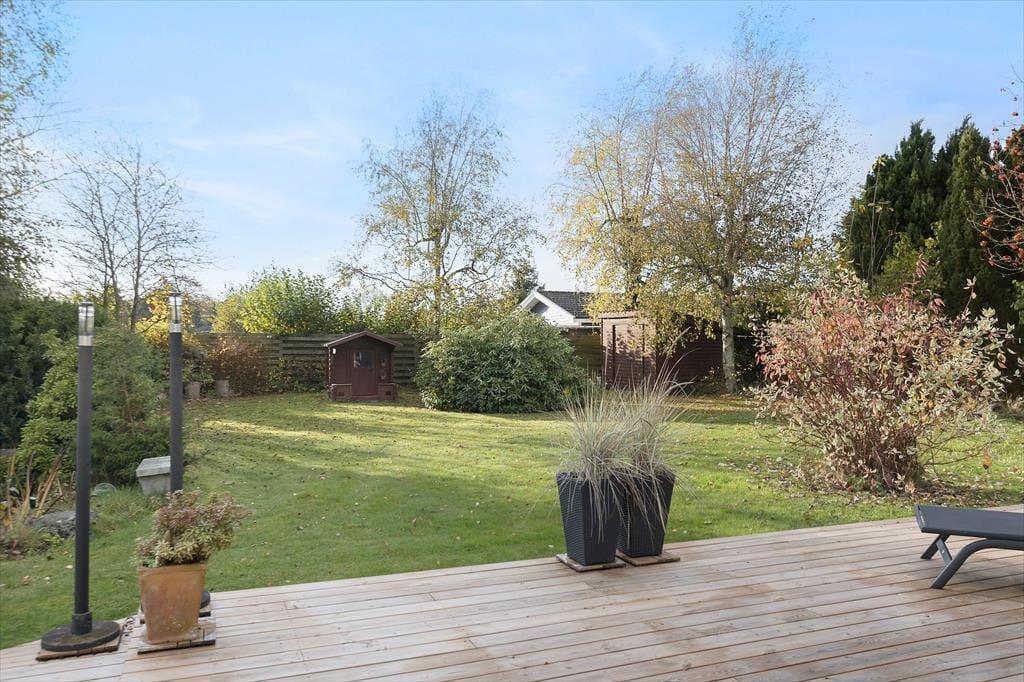 Sommerhuset er beliggende på en dejlig stor grund med masser af plads til leg og boldspil, samt gynge og legehus. Desuden er der en skøn terrasse med flere havemøbler der indbyder til hyggelige grillaftener.