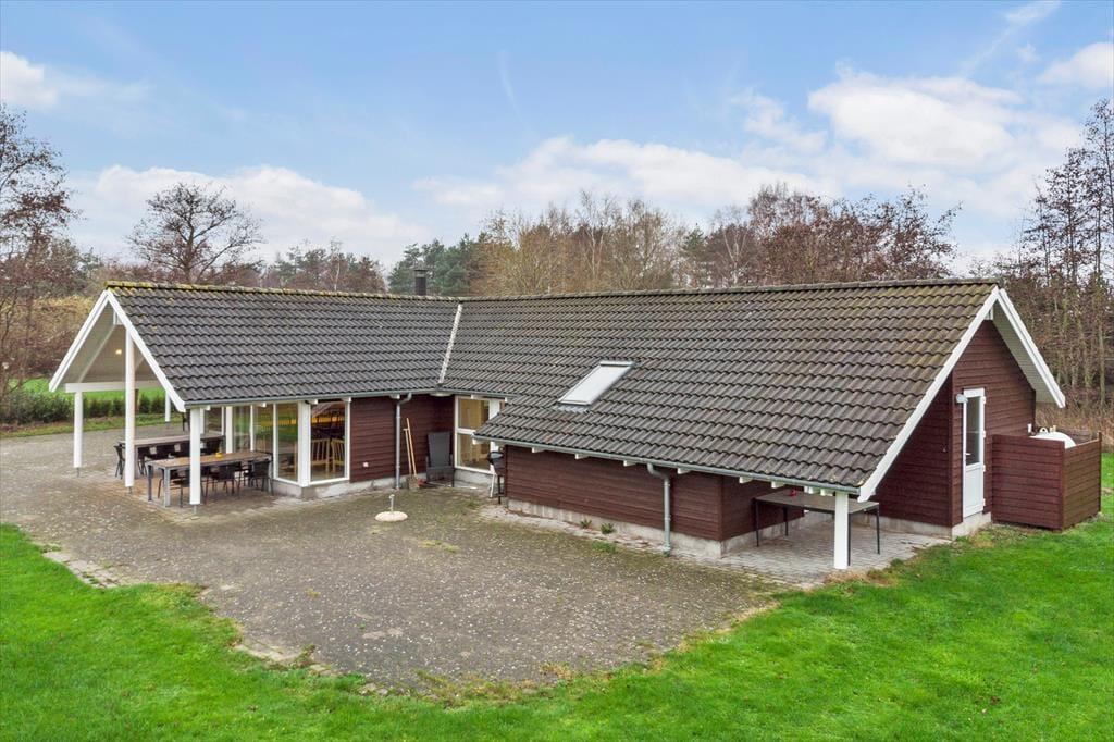 Udendørs finder i en skøn stor åben terrasse samt en overdækket terrasse med grill og masser af siddepladser til at nyde de dejlige grillaftener. Desuden er der en stor have på en 1284kvm havegrund med rig mulighed for at boltre sig.