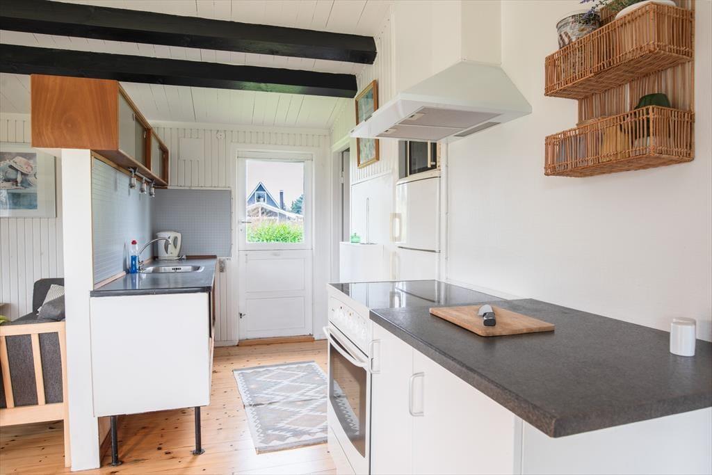 Sommerhuset indeholder: Entre, badeværelse med wc og bruser, 2 gode soveværelser med dobbeltseng i det ene soveværelse og køjeseng i det andet soveværelse. Derudover er der et åbent køkken, med spise område og sofaområde. I stuen er der brændeovn og udgangs til sommerhuset skønne terrasse.