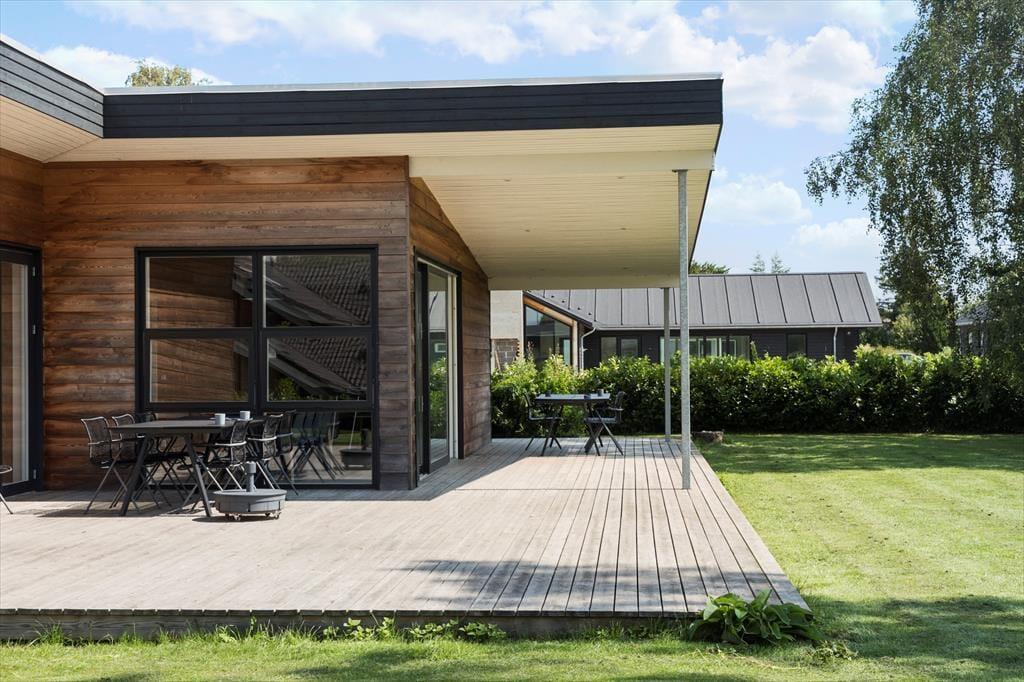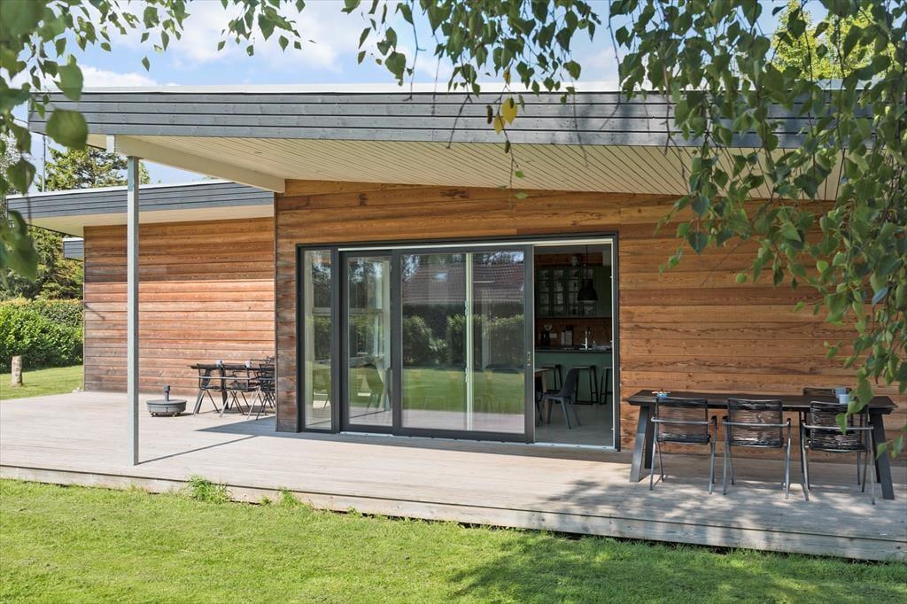 Udenfor byder ejendommen på en god lukket have og græsplæne til boldspil og leg, og en stor dejlig træterrasse med havemøbler perfekt til afslapning.