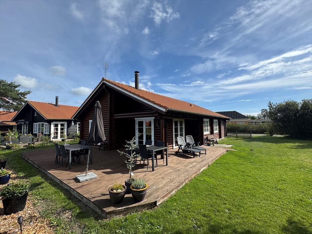 Feriehuset byder på 3 gode soveværelser og en hems med 2 madrasser. 1 stort rummeligt badeværelse som indeholder bruser, WC, spabad og sauna. Derudover husets hjerte, som er det skønne køkken-alrum, som indeholder et åbent køkken, en spiseafdeling nær køkkenet, samt en stue og sofaafdeling i den anden ende. Fra stuen er der ligeledes udgang til terrassen, hvorfra der er udsigt til grønne fællesarealer.