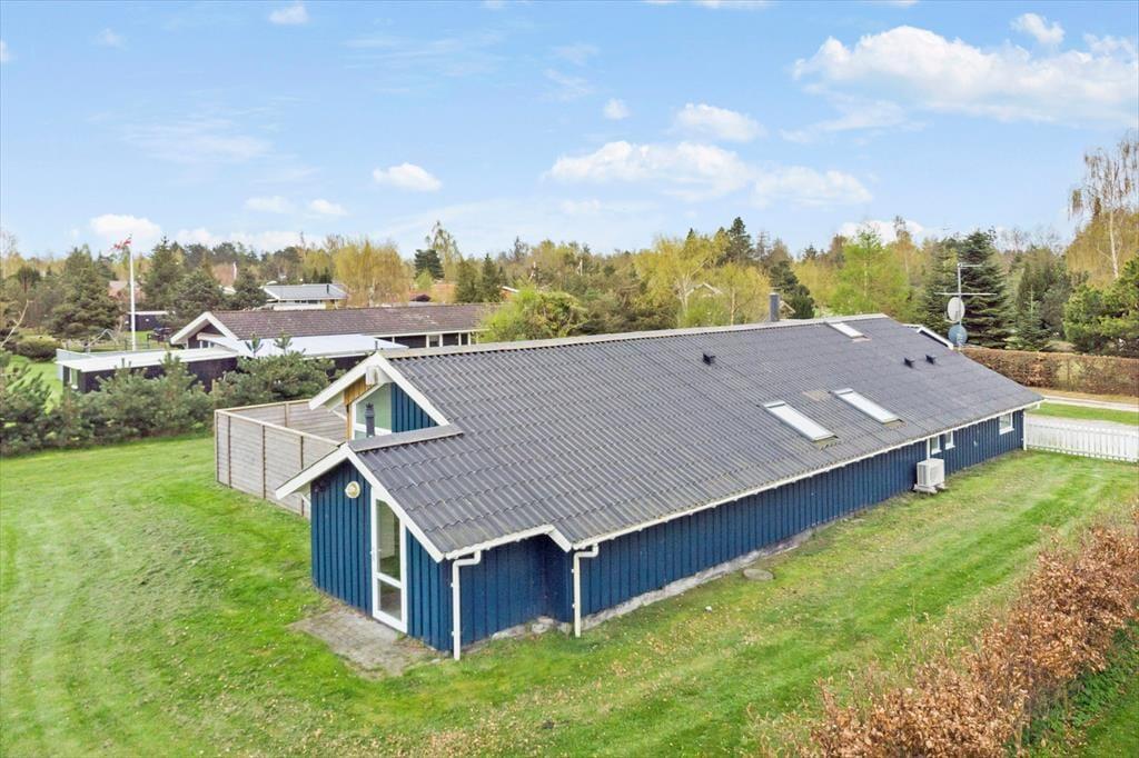 Feriehuset ligger på stor grund, med god plads til boldspil og leg med hele familien.