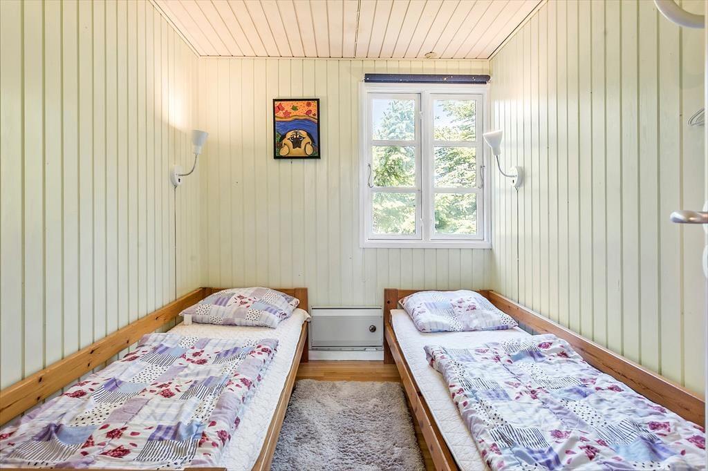 Feriehuset byder på 2 soveværelser, med dobbeltseng i det ene og 2 enkeltmandssenge i det andet. Feriehuset har dernæst et badeværelse med wc, bruser og vaskemaskine. Derudover har feriehuset et køkken, med udgang til spisestue og stuen. Fra stuen er der udgang til feriehusets terrasser.