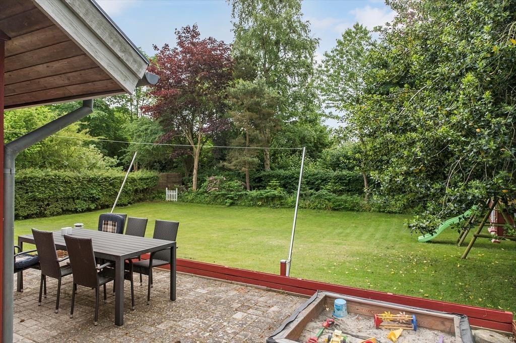 Feriehuset er beliggende på en 1100 kvm stor grund, hvor der er plads til en masse aktiviteter i haven. Feriehuset har en skøn terrasse med havemøbler og grill. Derudover byder haven på sandkasse, legehus, gyngestativ og en lukket grund. Til feriehuset er en carport.