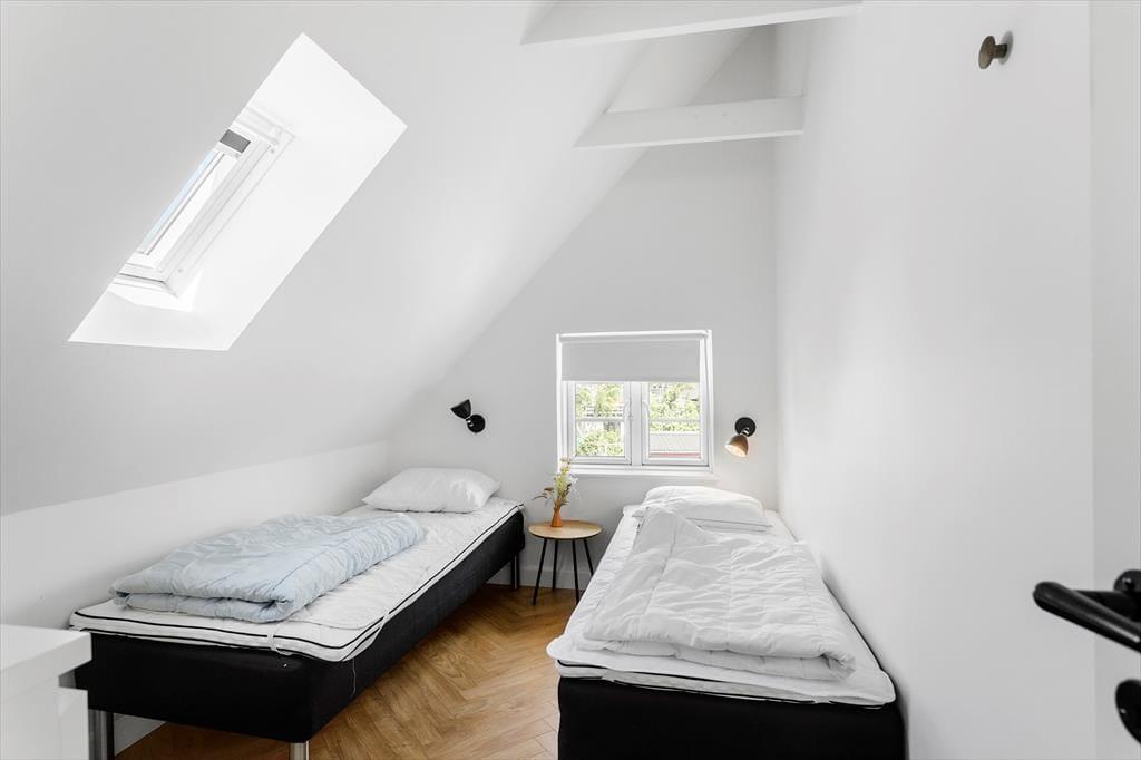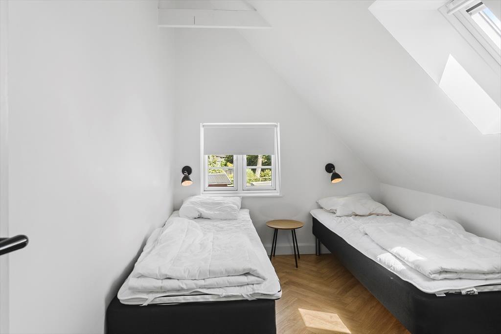På feriehusets første sal finder man 3 soveværelser, hvor der er 2 enkeltmandssenge i 2 af soveværelserne, og en dobbeltseng + enkeltmandsseng i det sidste. På første salen er der et badeværelse med wc og bruser.