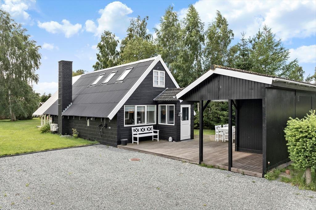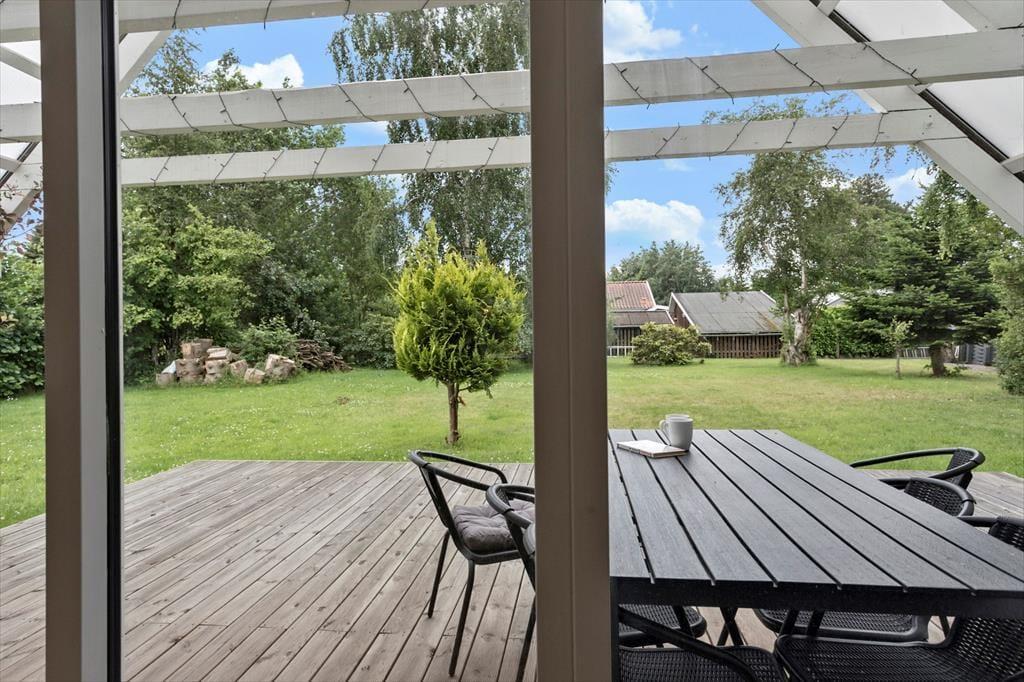 Feriehuset ligger på en 1000 kvm stor grund, med en skøn græsplæne der indbyder til leg og aktivitet. Derudover byder huset på en skøn terrasse, som er delvist overdækket. På terrassen finder man havemøbler og grill.