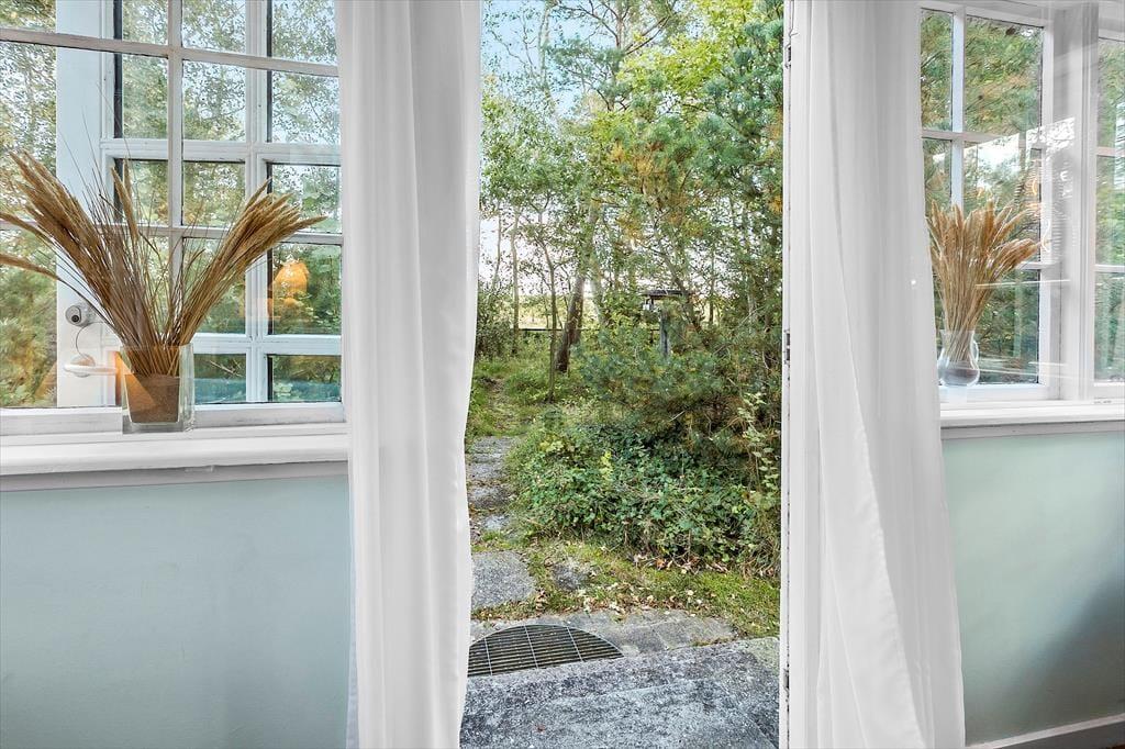 Feriehuset er beliggende på en kæmpe, 2400 kvm stor, skovagtig grund, men hvor der alligevel er sol i huset og haven hele dagen. Feriehuset har tre skønne terrasser med havemøbler og grill. Den frodige have giver fornemmelsen af at være i en skov - med bølgernes brusen lige i baggrunden. Her er masser af plads til at masse sjov og leg.