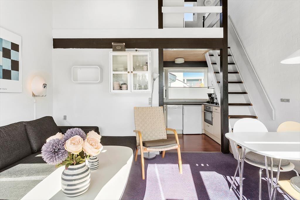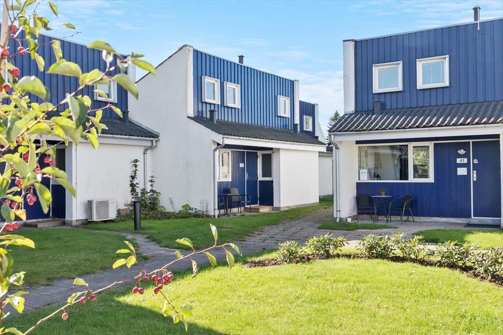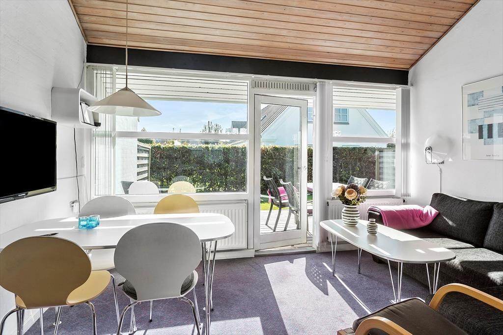Til lejligheden hører 2 små terrasser, en lille hyggelig privat terrasse på bagsiden af lejligheden, og en lille terrasse foran lejligheden. Der er havemøbler på begge terrasser og grill på den ene af terrasserne. Lejligheden er en ende lejlighed, hvor der kun er nabo på den ene side.
