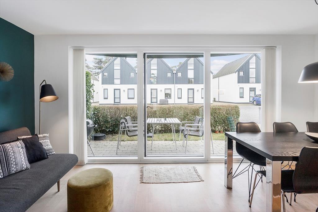 Til lejligheden hører en skøn delvis overdækket terrasse med havemøbler. Til ferielejligheden er der gode parkeringsforhold lige ved døren til lejligheden.