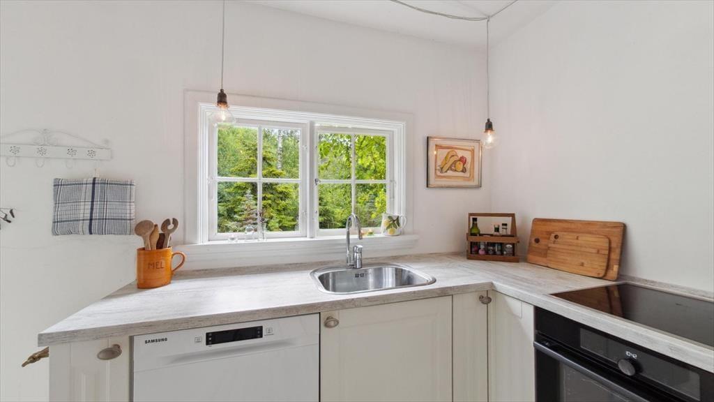 Det skønne sommerhus byder på entre, med indgang til stue og køkken. Hertil er der et badeværelse med wc, bruser og vaskemaskine. I stueetagen er der 1 soveværelse med en dobbeltseng. På husets førstesal er to soveværelser, med en dobbeltseng i det ene og 2 enkeltmandssenge i det andet.