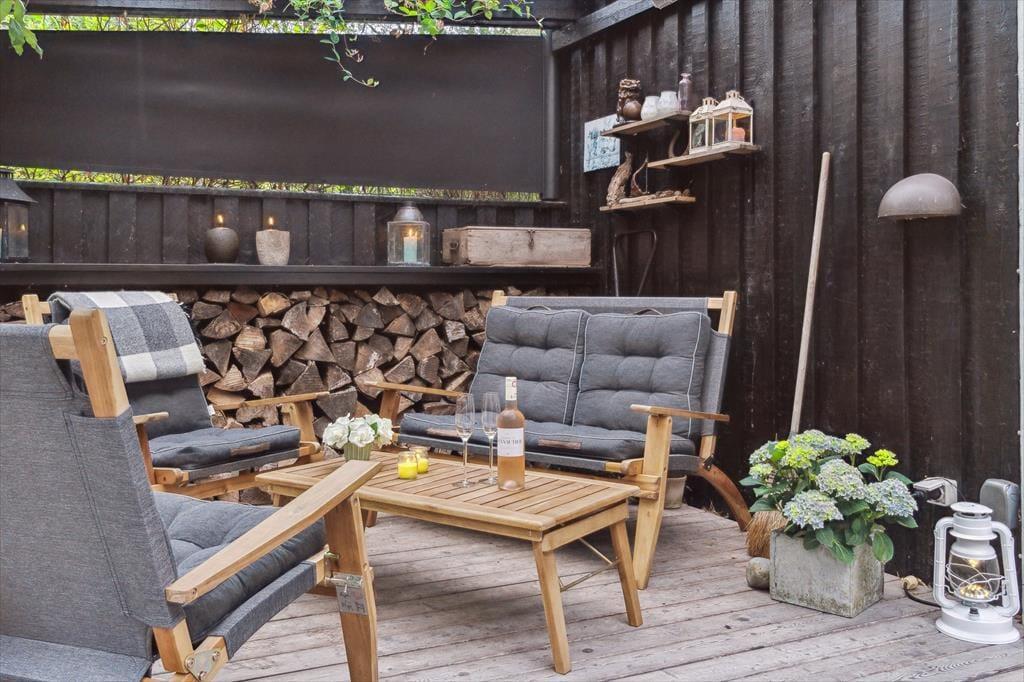 Fra stuen er der udgang til husets skønne terrasse og have.