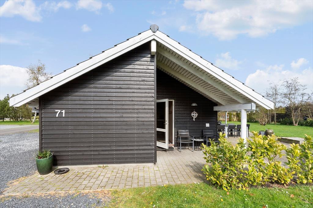Sommerhuset er beliggende på en 1050 m² stor grund. Huset har en skøn terrasse med havemøbler og grill. Derudover er der en stor græsplæne, hvor der er plads til en masse sjov og leg. Der er parkeringsplads ved huset.