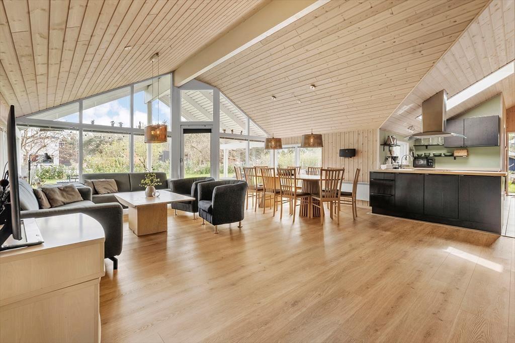 Sommerhuset egner sig til 10 personer. Sommerhuset er 141 m² og er bygget i 2005. Sommerhuset byder på en entre, 4 gode soveværelser, med dobbeltseng i 2 af soveværelserne, og 2 enkeltmandssenge i de sidste 2 soveværelser. Derudover er der en hems med 2 sovepladser. Dernæst er der 2 badeværelser, med wc, bruser, vaskemaskine og tørretumbler i det andet og wc, bruser og sauna i det andet. Dernæst har sommerhuset det skønne køkken-alrum med spiseafdeling og sofaområde. Fra stuen er der udgang ti husets skønne terrasse.