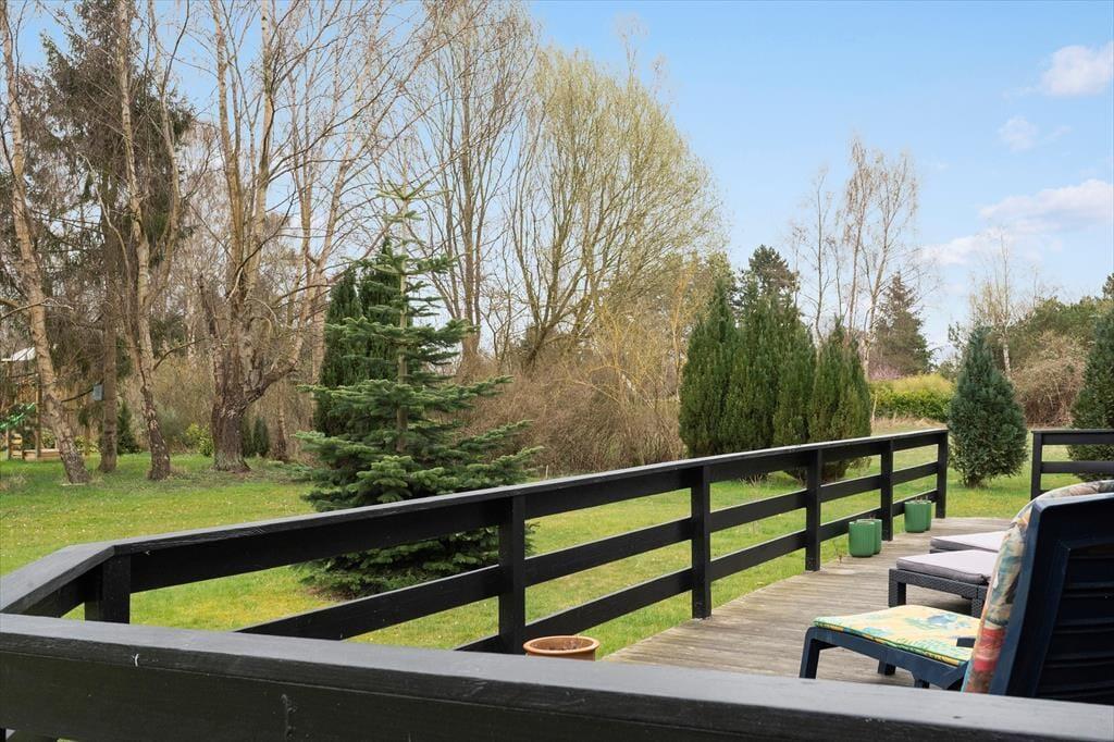 Sommerhuset er beliggende på en 1.163 m2 stor grund, hvor der er plads til en masse udendørs aktiviteter. Til sommerhuset er en skøn terrasse med havemøbler og grill, derudover er der en carport i indkørslen. I haven er der gyngestativ og sandkasse til de små.