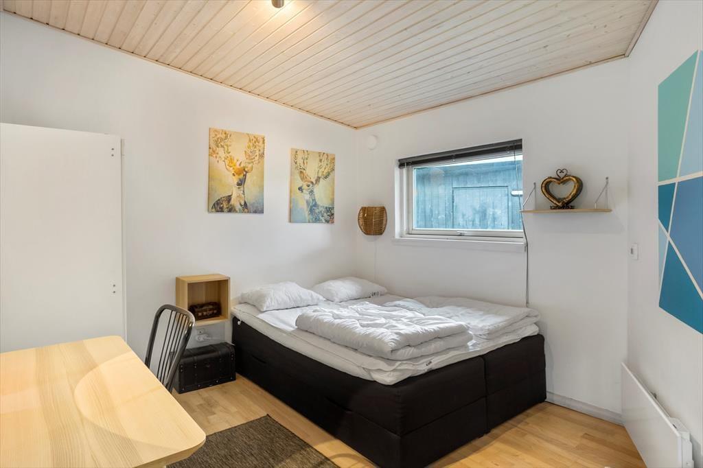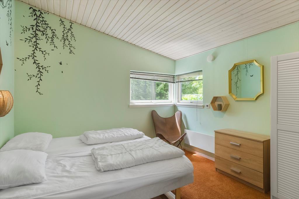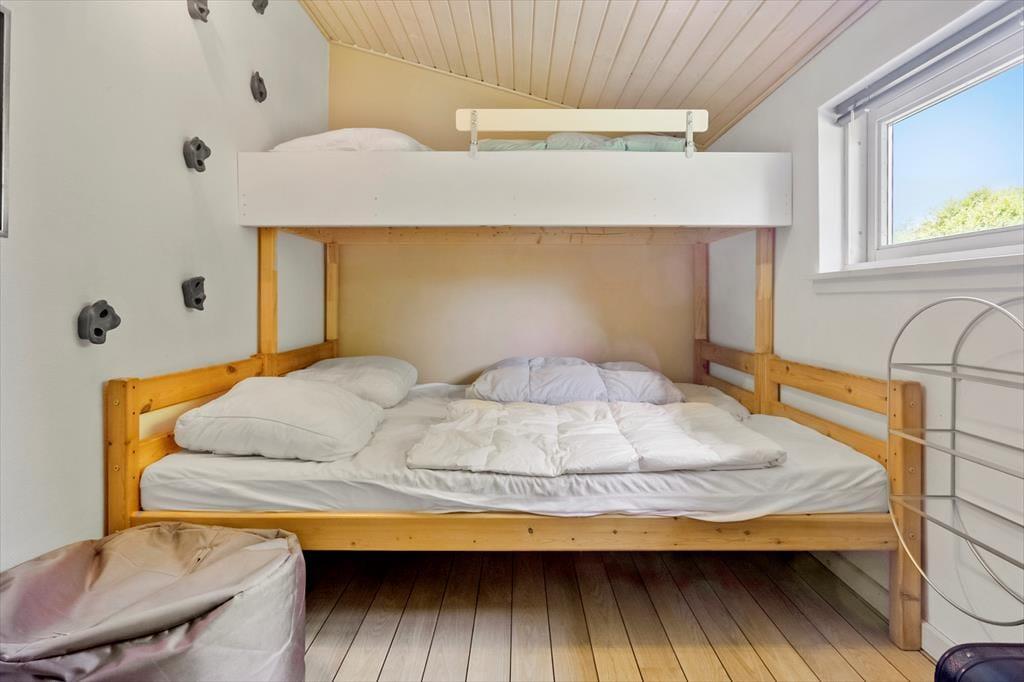 Sommerhuset rummer op til 8 voksne og 2 børn fordelt på 140 m². Her finder I en indbydende entré og fire komfortable soveværelser: To med dobbeltsenge, ét med tre enkeltsenge og ét med en køjeseng – perfekt til børn.