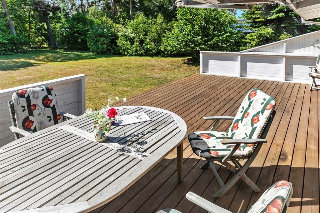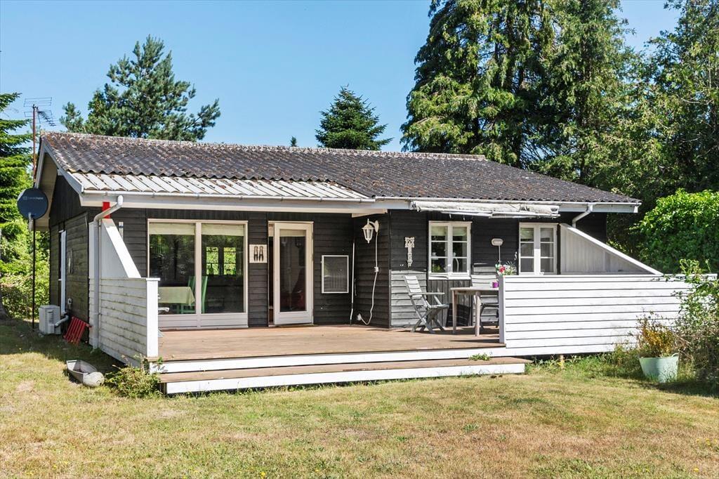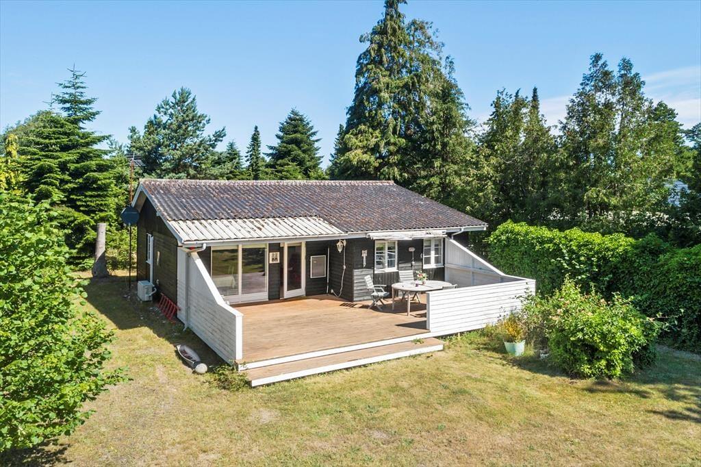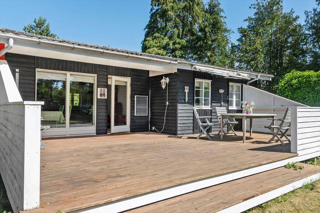 Sommerhuset ligger på en 1008 m² stor grund og byder på en dejlig træterrasse med havemøbler og grill – perfekt til hyggelige måltider under åben himmel. Den tilhørende have er skøn og rummelig med masser af plads til leg, boldspil og afslapning for hele familien.