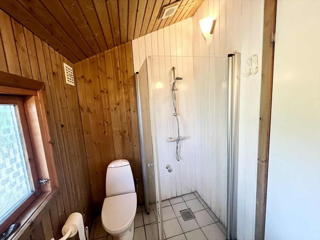 Dette skønne sommerhus byder på entre med vaskemaskine og tørretumbler. Dernæst er der to badeværelser, med wc og bruser i det ene, og wc, bruser, spabad og sauna i det andet. Huset har 3 gode soverum, med dobbeltseng i 1 af soveværelserne og 2 enkeltmandssenge i de 2 sidste soveværelser. Til sidst byder huset på det skønne køkken-alrum med udgang til spisestue og stue. Fra stuen er der udgang til husets terrasse og have. I stuen er der en alkove med soveplads til 2 personer.