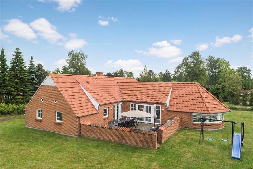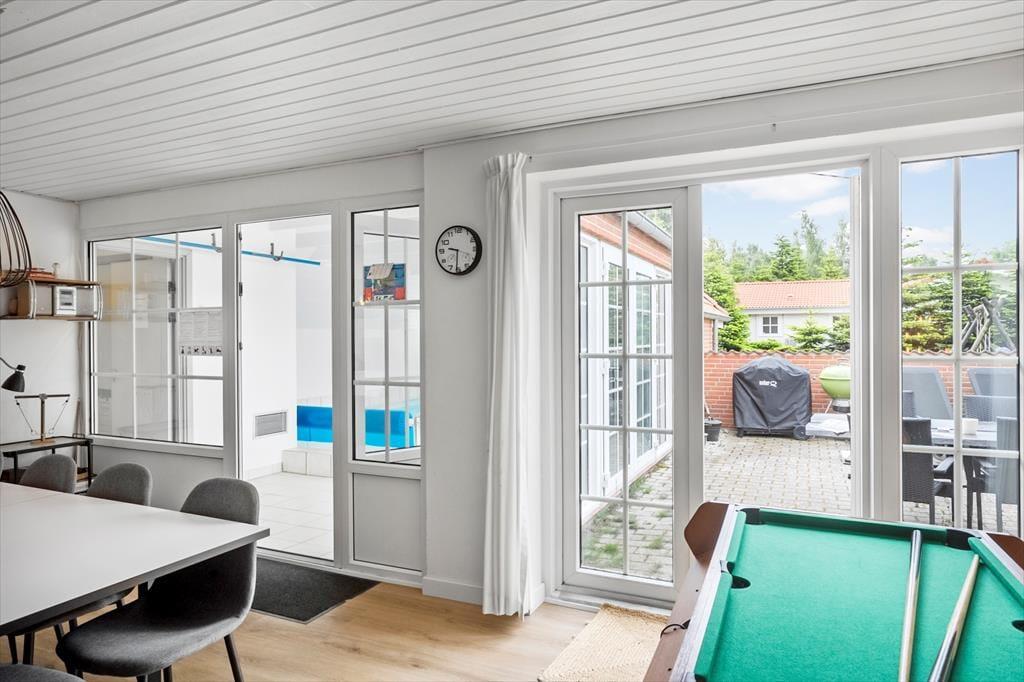 Sommerhuset byder på 6 gode soveværelser, 3 badeværelser, 1 bryggers, og et åbent køkken i forbindelse med opholdsstuen. Fra stuen er der indgang til husets dejlige swimmingpool samt udgang til terrassen og haven.