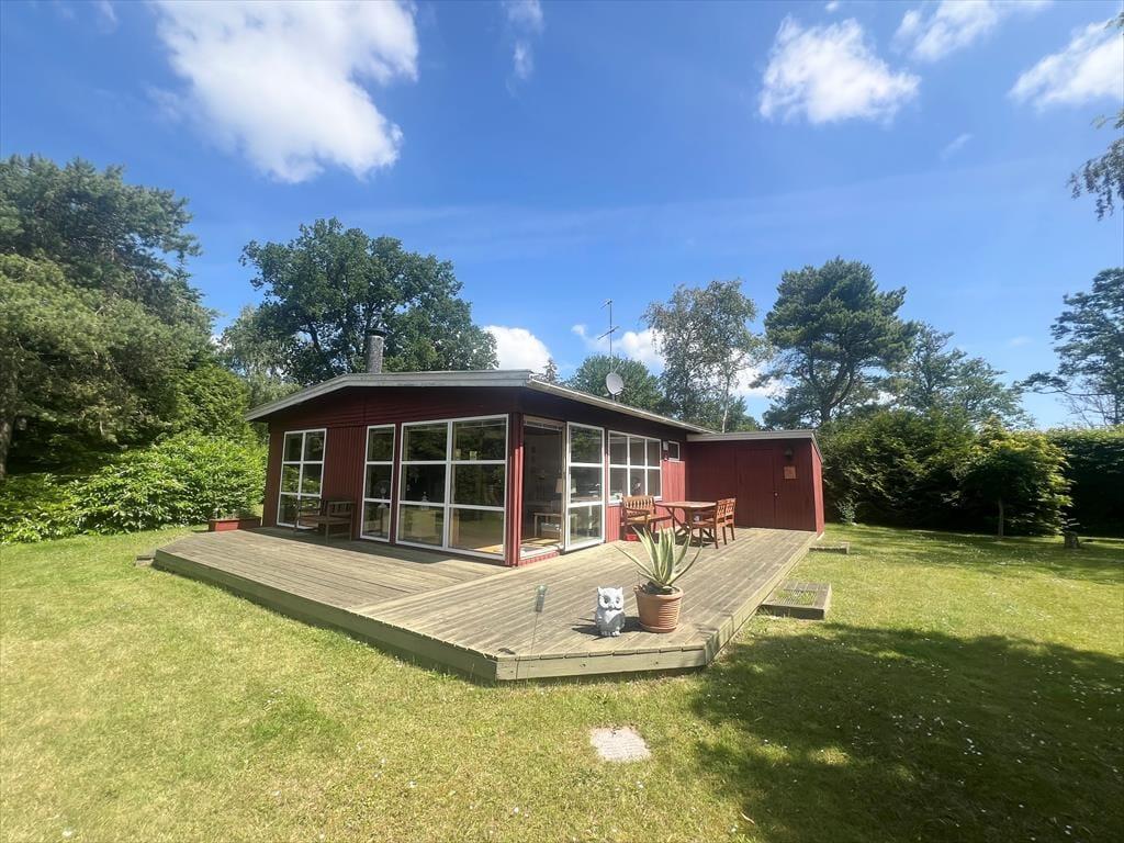 Sommerhuset er beliggende kun 50 meter fra den skønneste badestrand. Der er direkte adgang fra sommerhusets grund, til badestranden hvilket gør huset meget unikt. Til huset er en skøn terrasse, med havemøbler og grill. Derudover er der også plads til sjov og leg, på sommerhusets græsplæne.