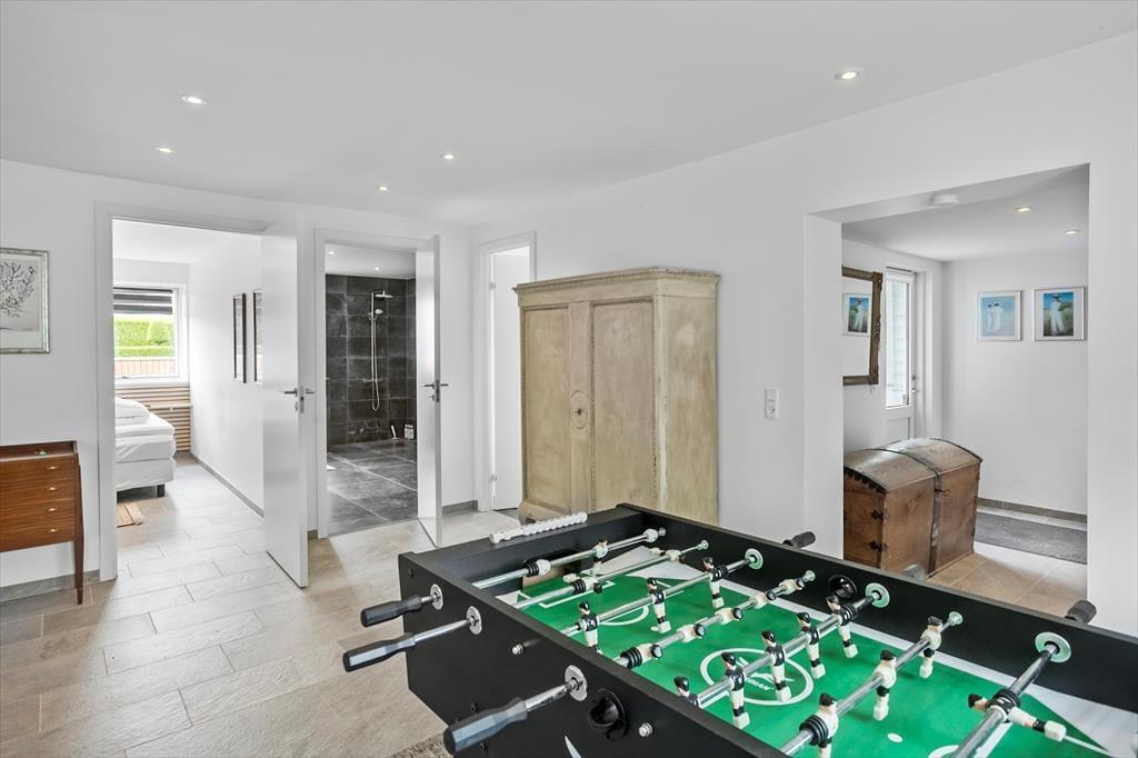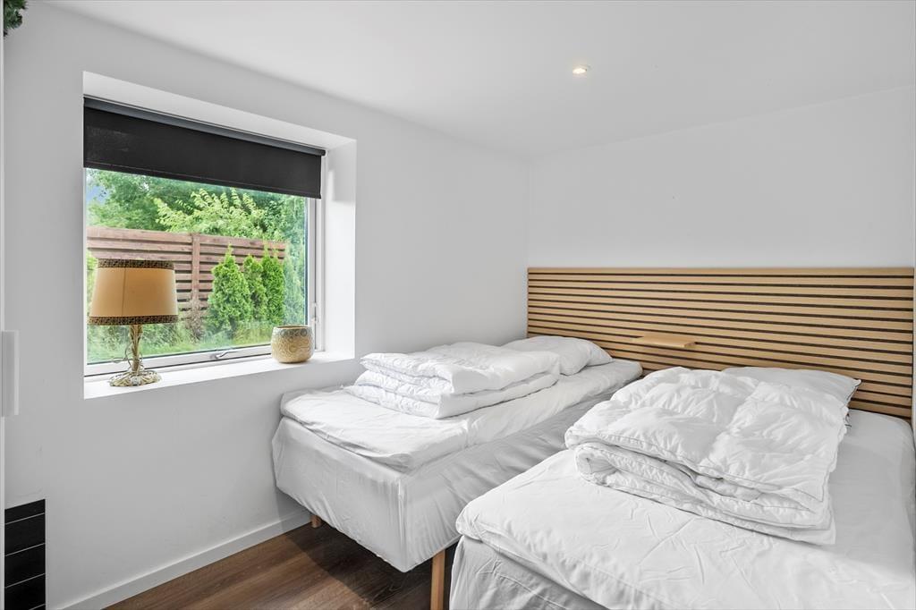 Dette skønne nyrenoverede sommerhus byder på en entré og fire rummelige soveværelser – tre med komfortable dobbeltsenge og ét med to enkeltsenge, ideelt til både familie og par. Huset rummer to stilfulde badeværelser, hvoraf det ene er udstyret med både bruseniche, toilet og et lækkert badekar, mens det andet har bruser og toilet.