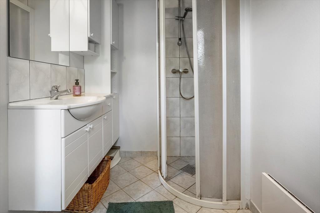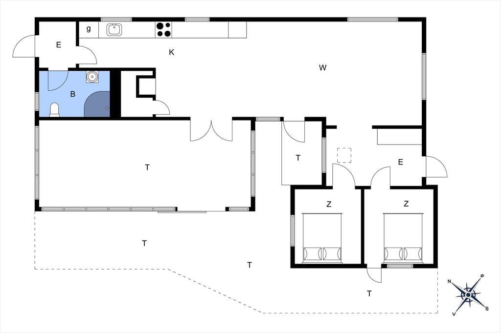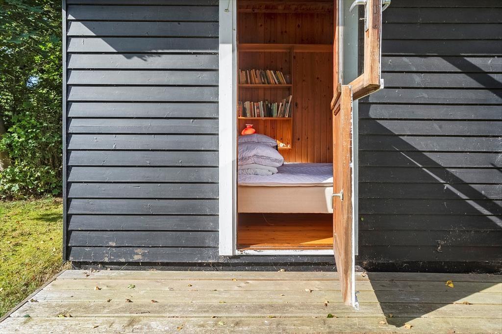 Fra husets udestue er der udgang, til terrassen, samt til husets anneks. I annekset er der 2 sovepladser, med en dobbeltseng. Til sidst byder sommerhuset på et badeværelse med wc, bruser og håndvask.