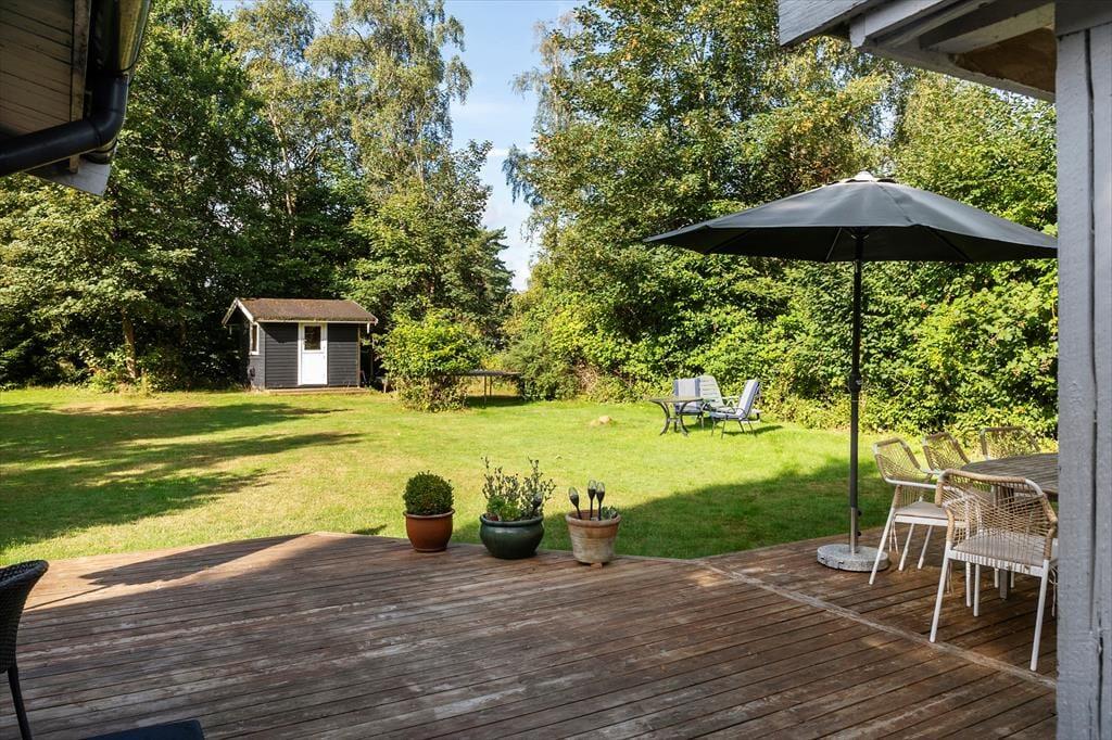 Sommerhuset er beliggende på en 1000 kvm stor grund. Sommerhuset har 1 skøn terrasse, med havemøbler og grill. Udover den skønne terrasse har sommerhuset en græsplæne, hvor der er plads til en masse sjov og leg.