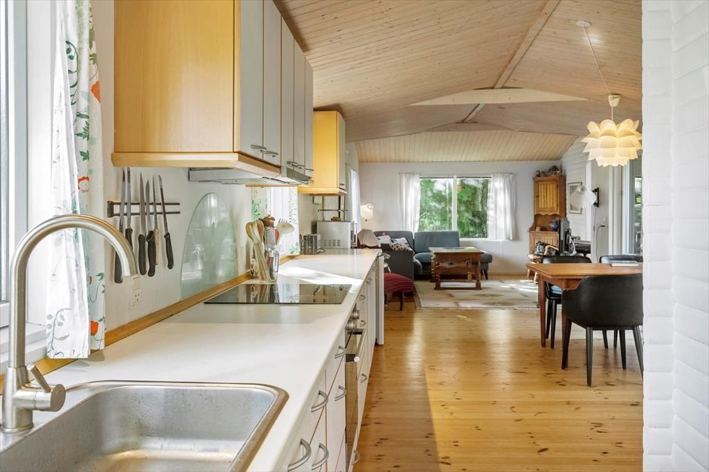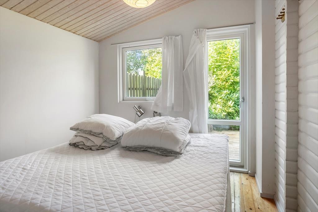 Sommerhuset byder på en entre, med indgang til husets åbne køkken. Her er der spise område og hyggekrog. Herfra er der udgang til husets skønne udestue. Derudover byder huset på en stue, med brændeovn, 2 gode soveværelser med dobbeltseng i begge.