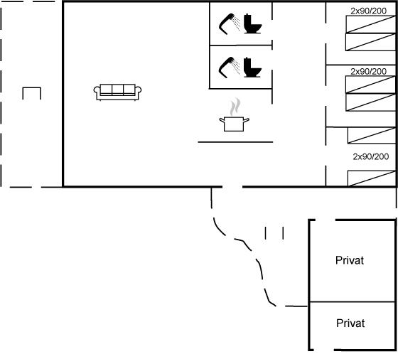 Der er 2 badeværelser med bruseniche og 2 toiletter. Der er gulvvarme på 2 badeværelser.
