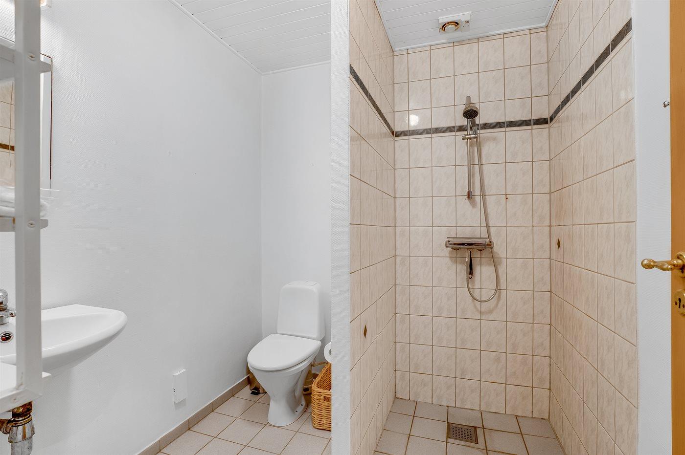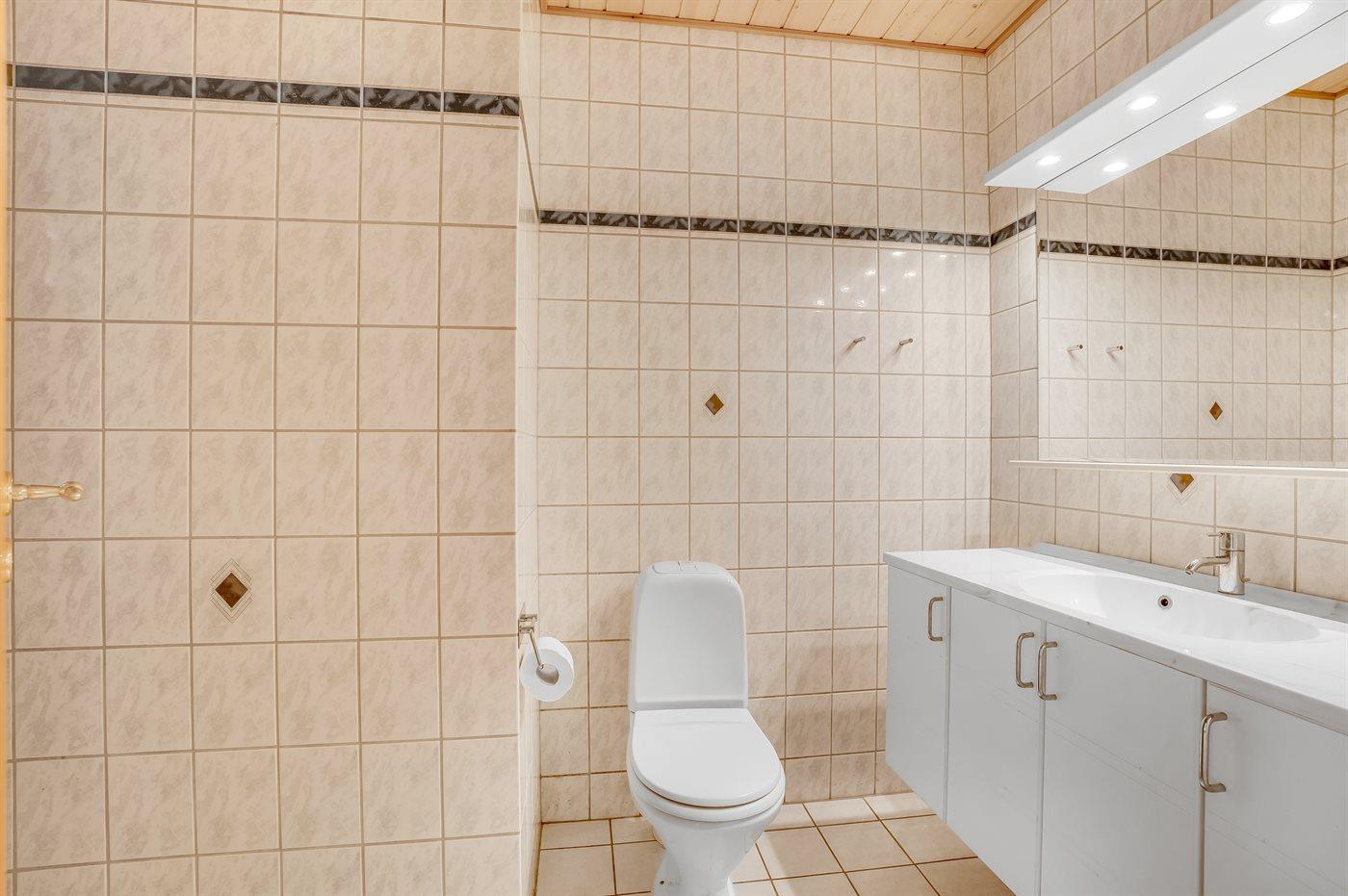Der er elektrisk gulvvarme på alle badeværelser, hvoraf det ene er med vaskemaskine og tørretumbler.