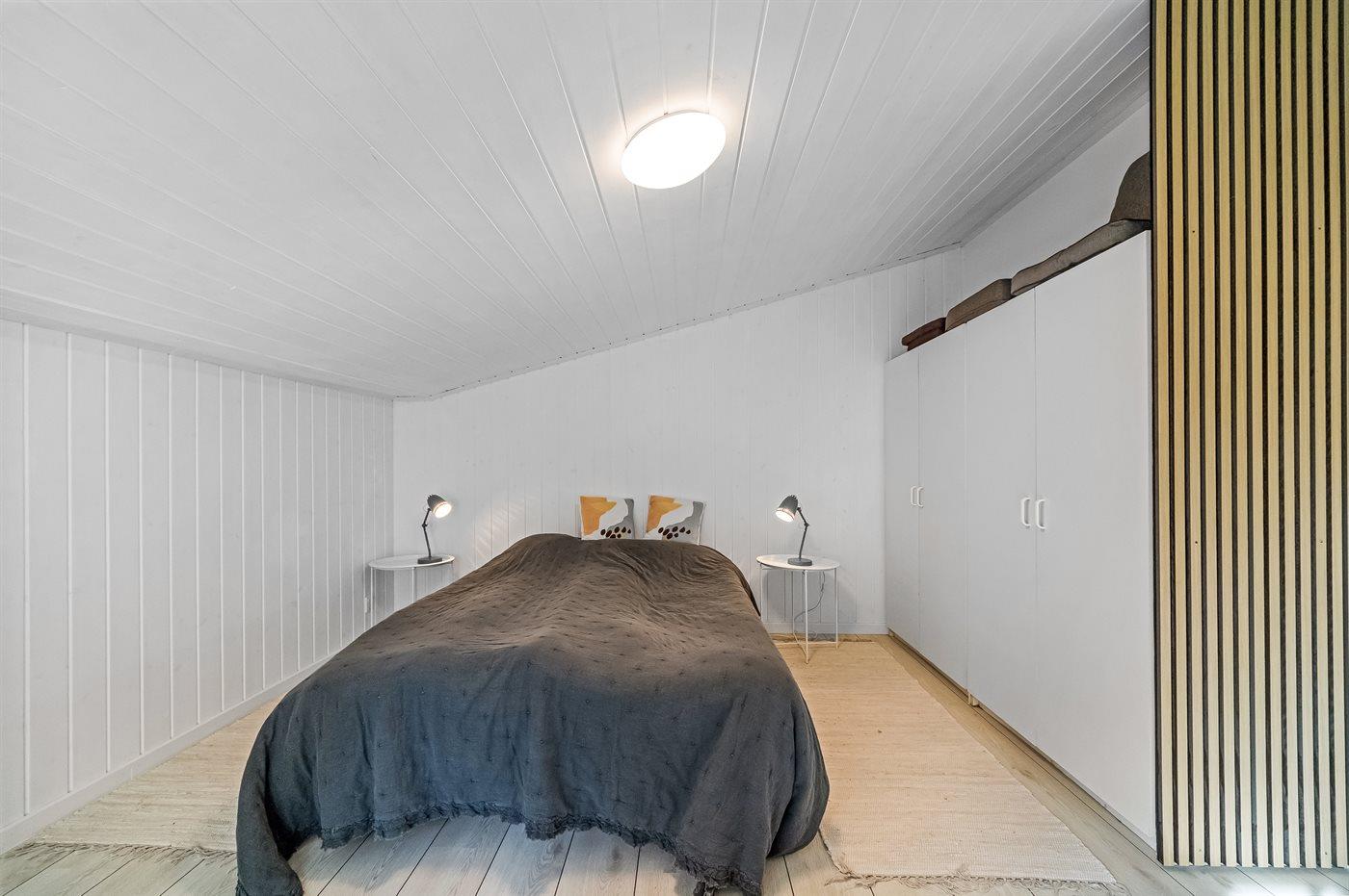 Der er i alt 3 soveværelser. Sovepladserne fordeler sig på: 4 sovepladser i dobbeltsenge. 2 sovepladser i enkeltsenge. Derudover er der 1 stk. barneseng.