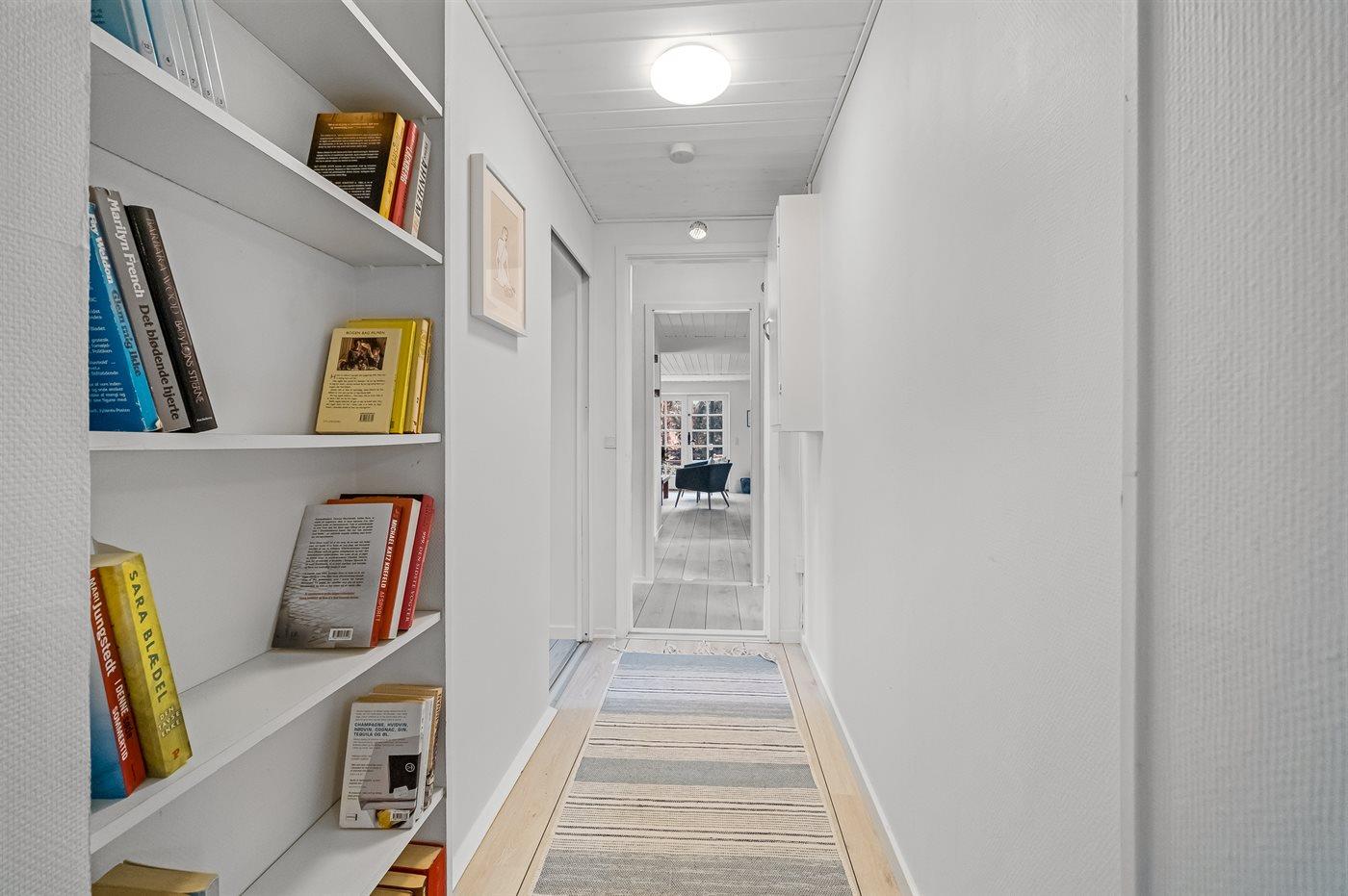 Sommerhuset er lyst og hyggeligt indrettet med køkken i åbent forbindelse med stuen, og der er tre dejlige soveværelser.