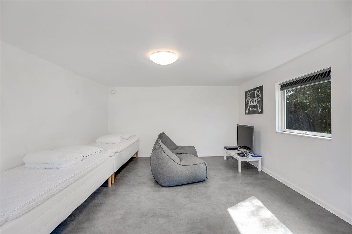 Køkken og stue er kombineret med plads til hygge. Der er Smart-TV i stuen, samt TV koblet til PlayStation i annekset. Udgang fra stue til dejlig terrasse og hyggelig grund med mulighed for underholdning og mange timers leg.