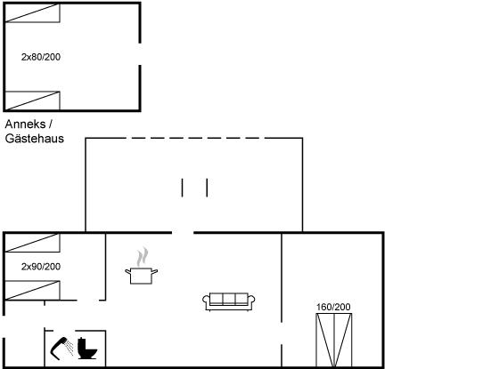 Der er i alt 3 soveværelser. Sovepladserne fordeler sig på: 2 sovepladser i dobbeltseng og 4 sovepladser i enkeltsenge. 2 af disse sovepladser befinder sig i anneks. Derudover er der 1 stk. barneseng.
