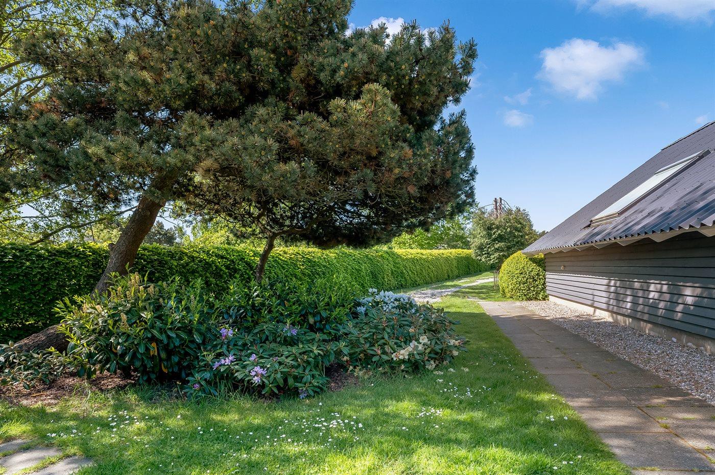 Ferieboligen er beliggende på en 1200 m² stor naturgrund. Der er 300 m til havet. Nærmeste forretning er beliggende i en afstand af 2000 m. Til ferieboligen hører 7 m² terrasseareal. Desuden er der 13 m² overdækket terrasse. Grill til rådighed. Parkering ved ferieboligen.
