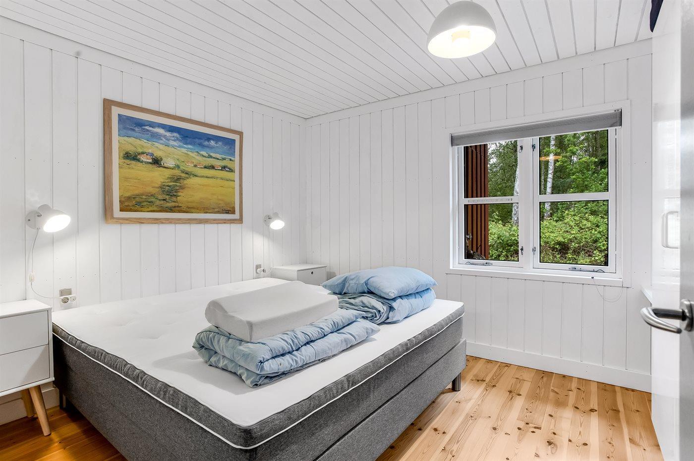 Der er i alt 2 soveværelser. Sovepladserne fordeler sig på: 2 sovepladser i dobbeltseng. 4 sovepladser i køjesenge. Derudover er der 1 stk. barneseng.