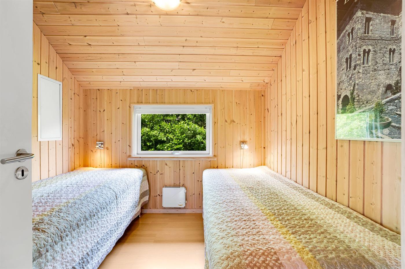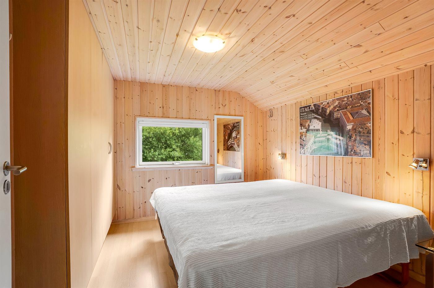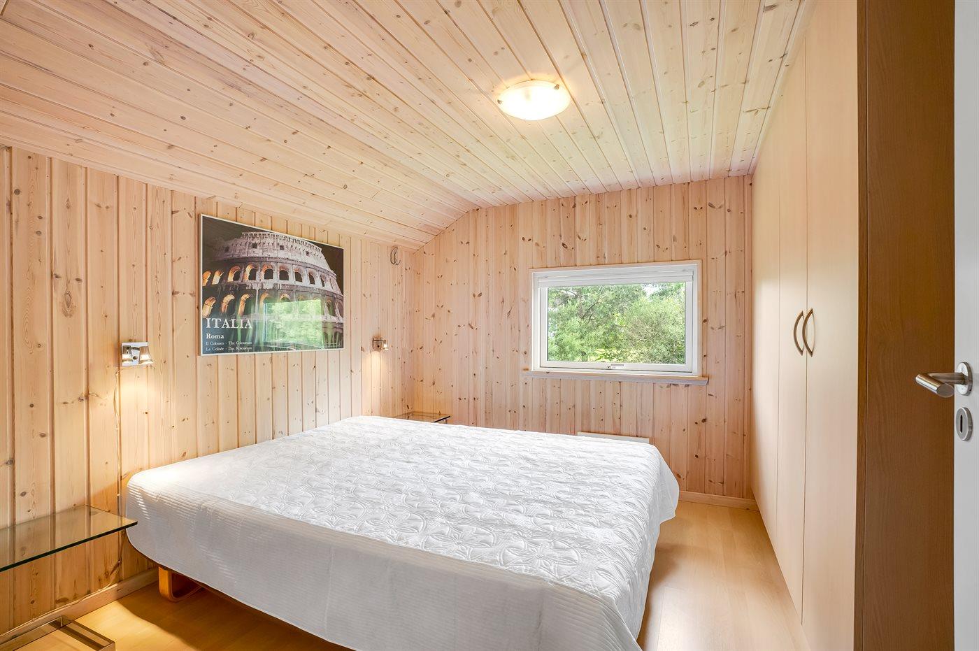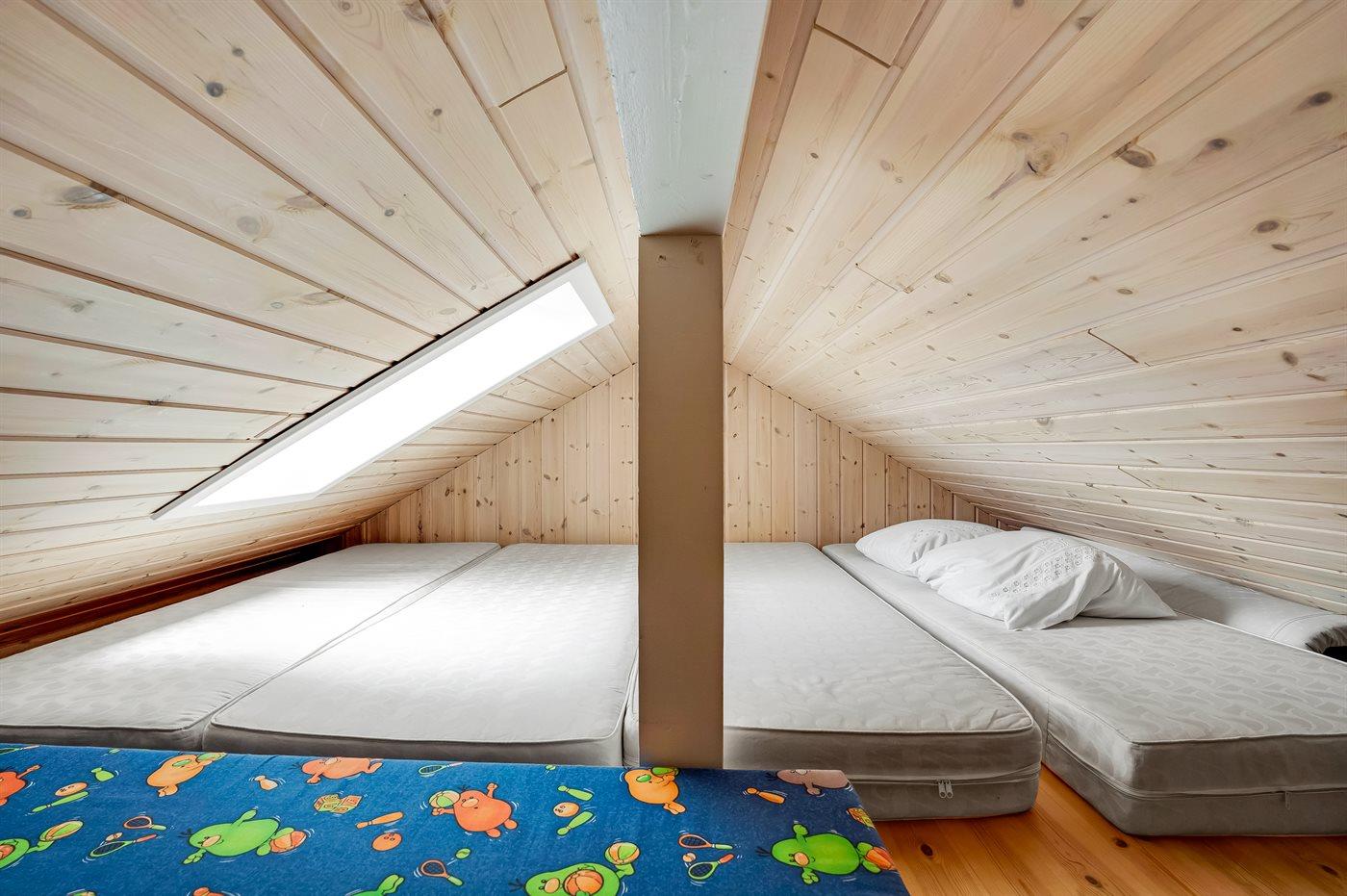 Der er i alt 4 soveværelser. Sovepladserne fordeler sig på: 6 sovepladser i dobbeltsenge. 2 sovepladser i enkeltsenge. 4 sovepladser på madrasser. 4 af disse sovepladser befinder sig på husets hems. Derudover er der 1 stk. barneseng.
