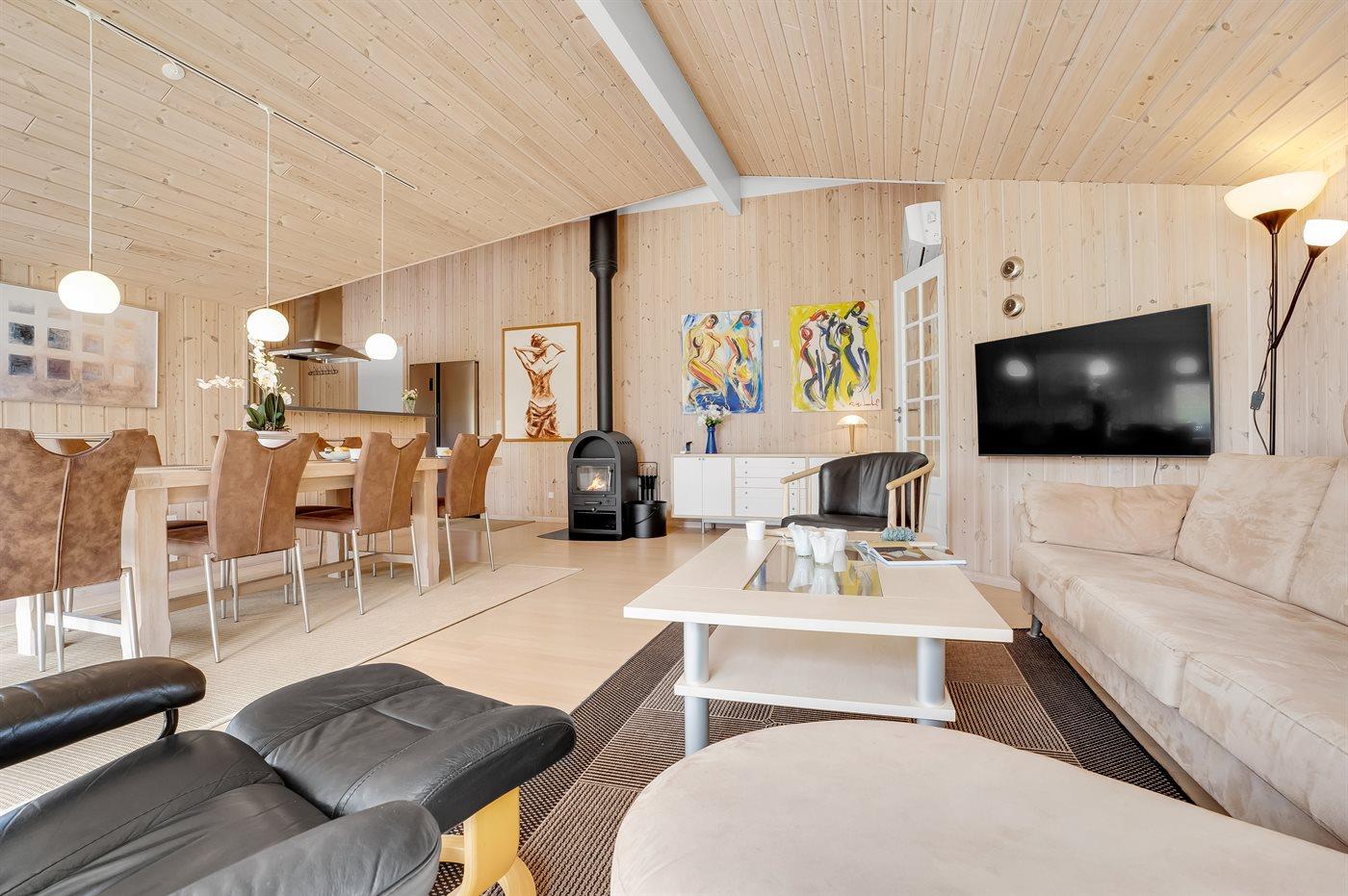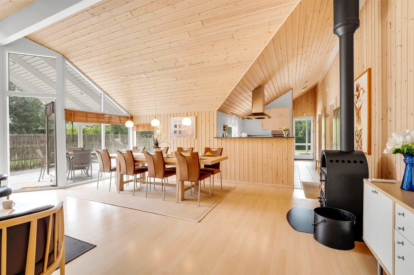 Sommerhuset egner sig til 12 personer. Ferieboligen er på 134 m² og er bygget i 2006. Det er ikke tilladt at medbringe husdyr. Ferieboligen er udstyret med 2 energivenlige luft til luft varmepumper. Der er gulvvarme i gangen. Ferieboligen har vaskemaskine. Tørretumbler. Frysekapacitet på 100 liter. Der er desuden brændeovn. Til de små er der 1 stk. barnestol.