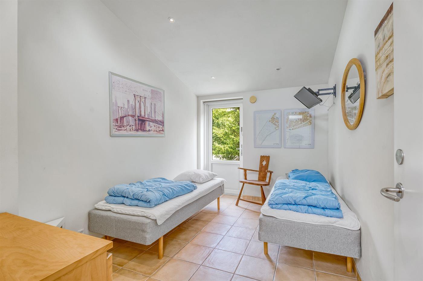 Der er i alt 6 soveværelser. Sovepladserne fordeler sig på: 8 sovepladser i dobbeltsenge. 4 sovepladser i enkeltsenge. Der er gulvvarme i 3 af soveværelserne.
