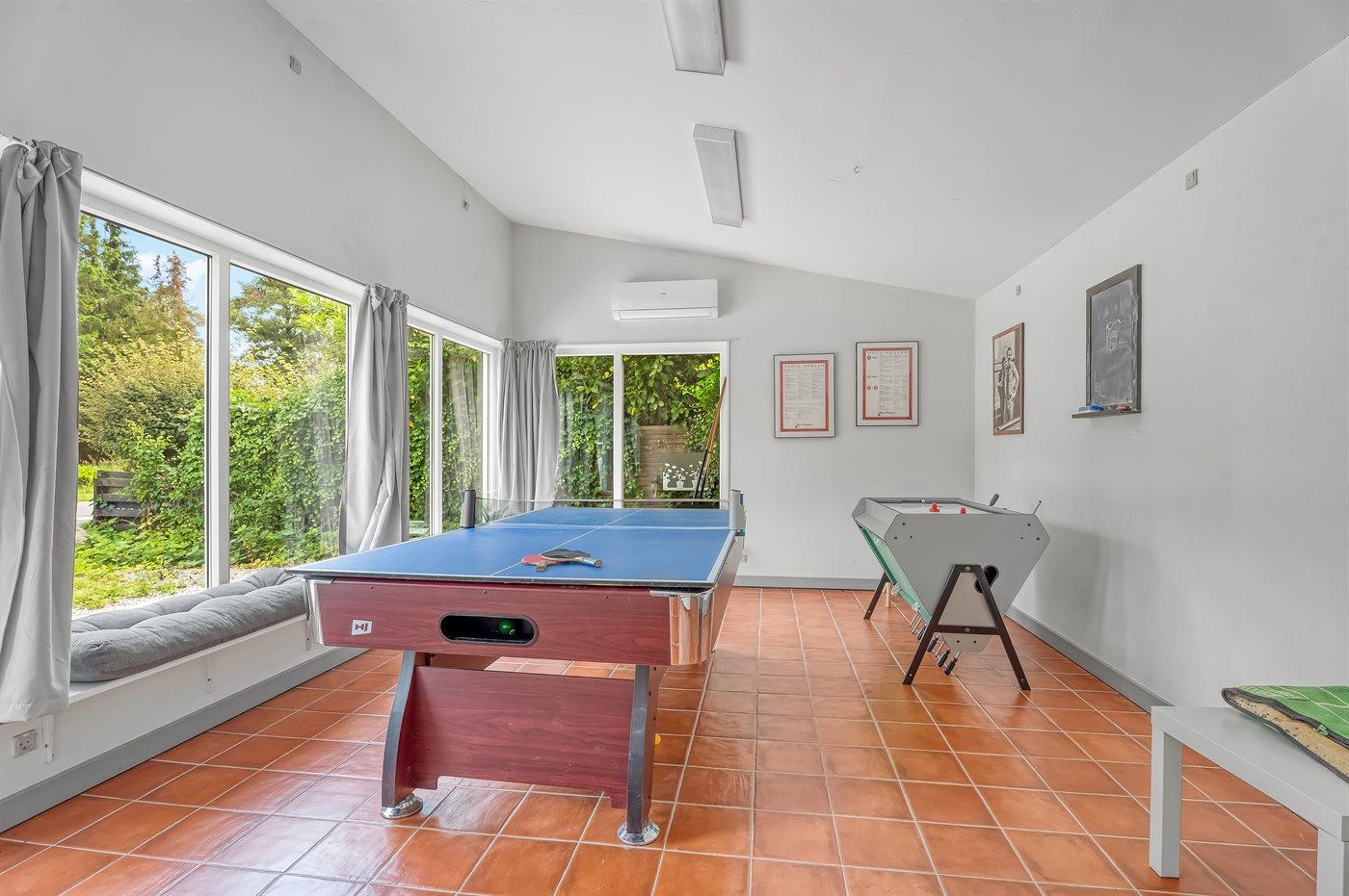 I aktivitetsrummet er der følgende udstyr: Billard. Bordtennis. Dart. Airhockey. Bordfodbold.