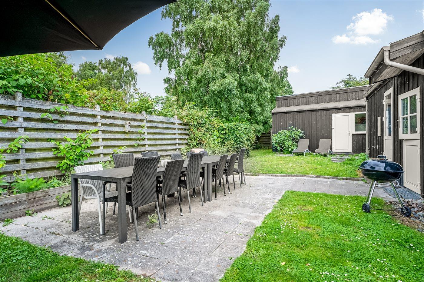 Der er masser af plads udendørs med læ kroge, havemøbler, stor bålplads og havegrill. Sommerhuset er særligt velegnet til familier, som gerne vil være tæt til vand, indkøb, centrum og Kjørups Kro.