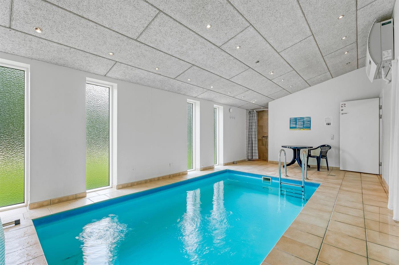 I den indendørs swimmingpool er der mulighed for leg og hyggeligt samvær. Swimmingpoolen måler op til 3 m i bredden, 4 m i længden og den er op til 1,3 m dyb. Vandet er mellem 24 og 28° C varmt. Der er gulvvarme i swimmingpoolområdet.