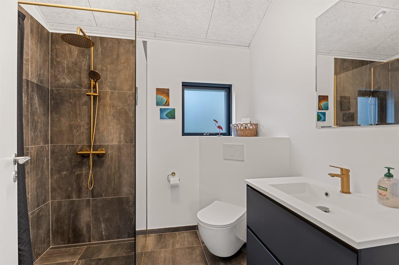 Der er 2 badeværelser med bruser og 2 toiletter. Der er gulvvarme på 2 badeværelser.