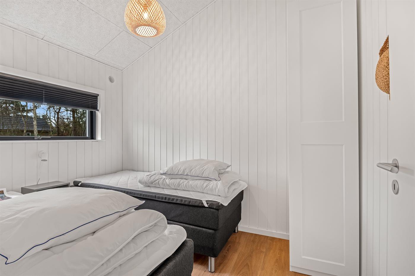 Der er i alt 4 soveværelser. Sovepladserne fordeler sig på: 6 sovepladser i dobbeltsenge. 2 sovepladser i enkeltsenge. 2 sovepladser på madrasser.- 2 af disse sovepladser befinder sig på husets hems. Derudover er der 1 stk. barneseng.