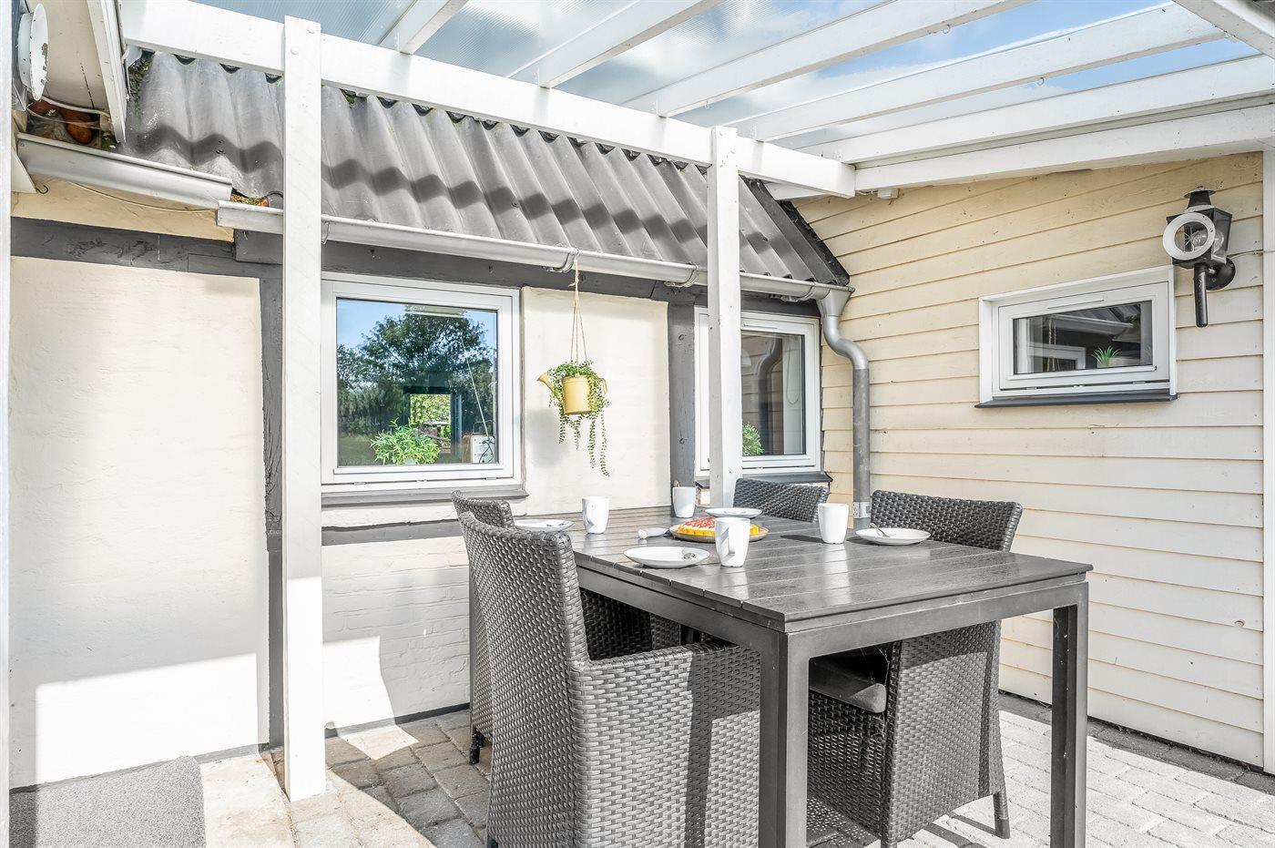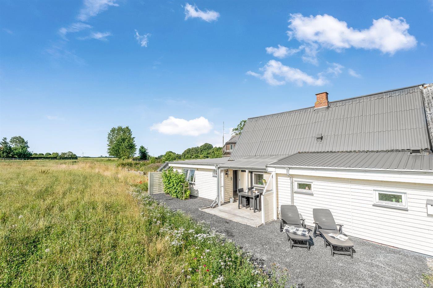 Fra stuen har du adgang til udestuen og videre ud på terrassen med havemøbler samt liggestole – her kan du slappe af, læse en god bog eller tilberede lidt mad på kuglegrillen. Fra den lille terrasse på bagsiden af huset er der udsigt til marker.